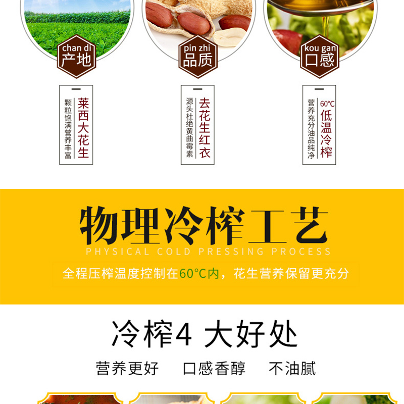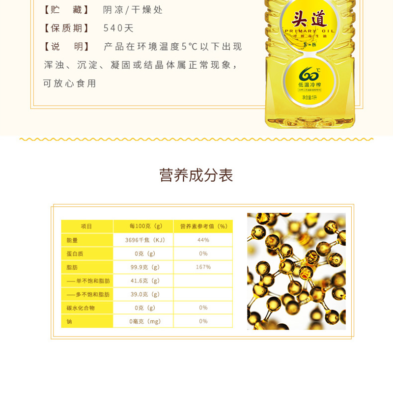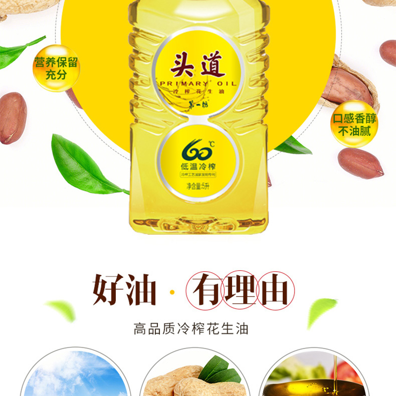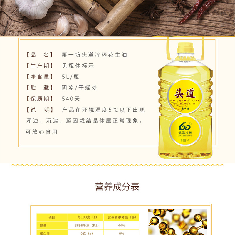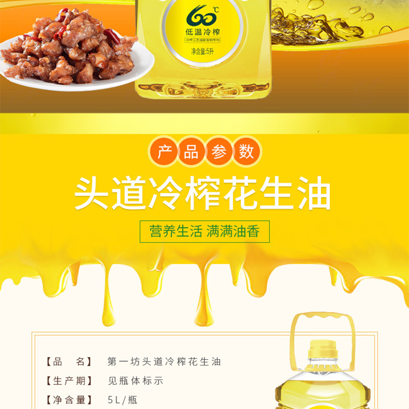 第一坊 头道冷榨花生油 5L 低油烟 食用油 黄色(单位:桶)
