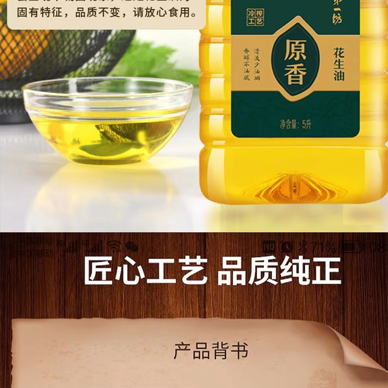 第一坊 原香花生油 5L 低油烟 食用油 黄色(单位:桶)