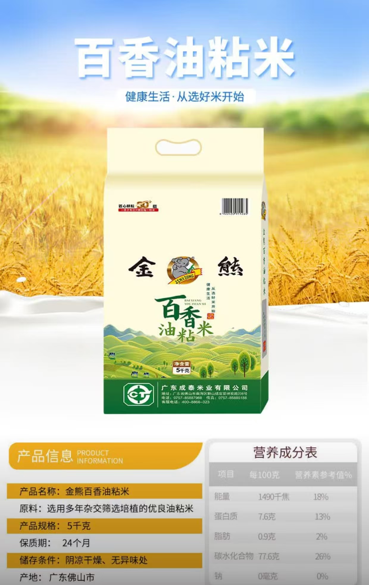 金熊 油粘米大米 5kg 百香 黄色(单位:袋)