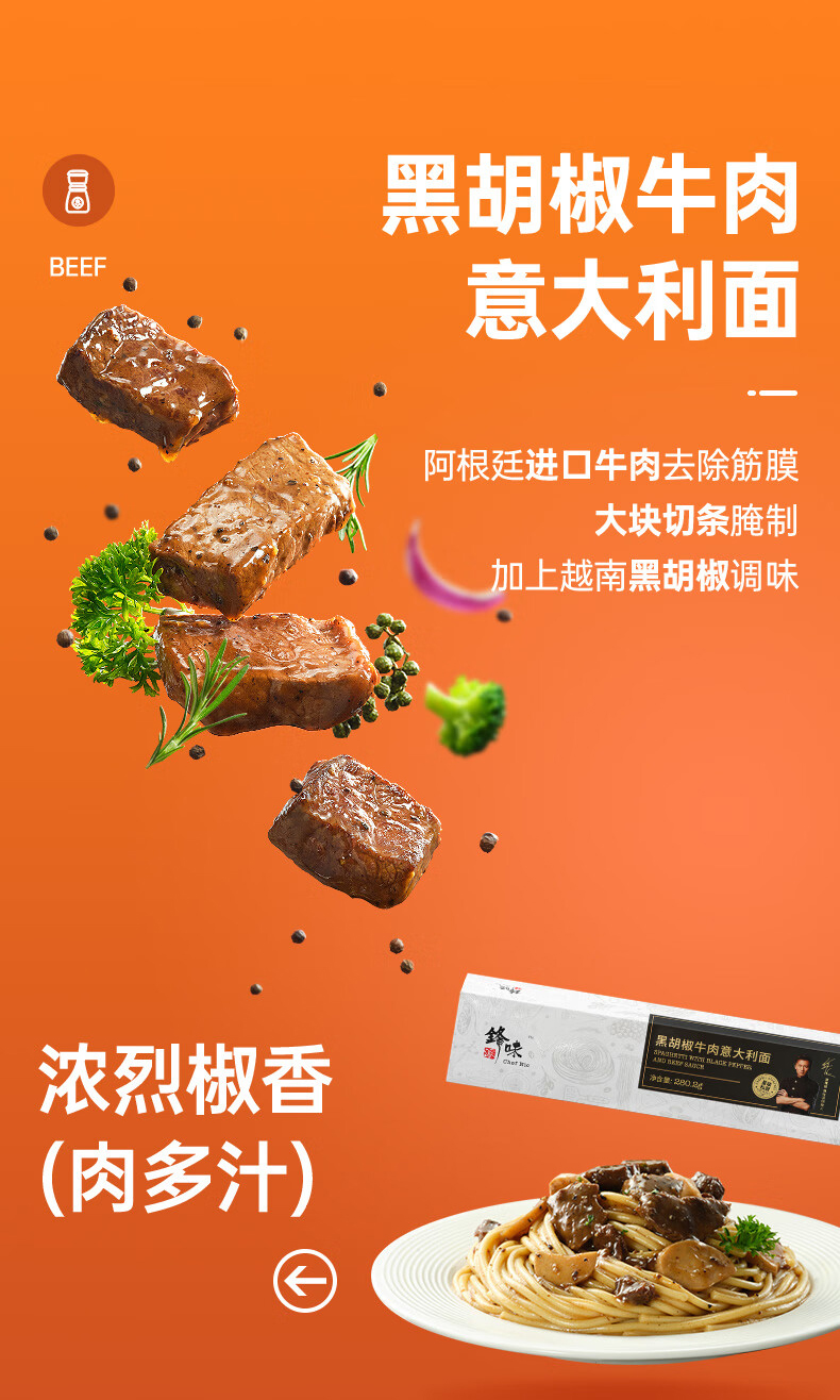 锋味派 黑胡椒味 280.2g*3 牛肉意大利面 白色(单位:组)