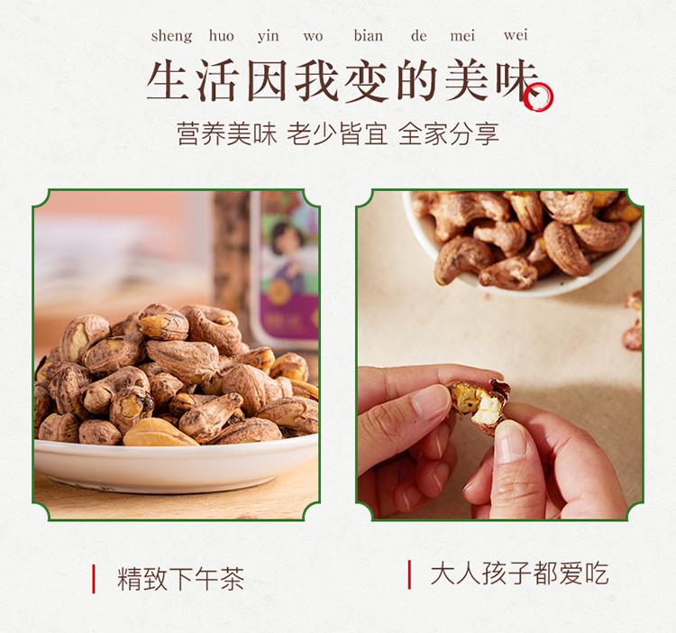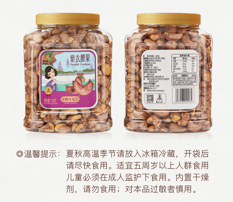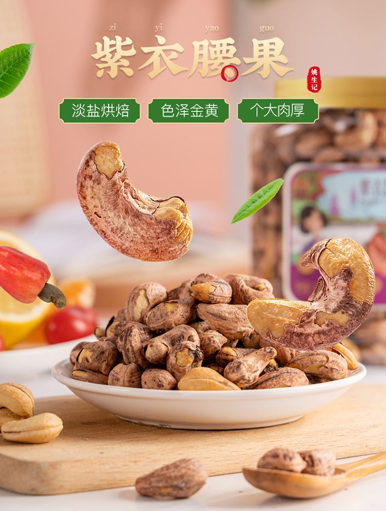 姚生记 紫皮腰果 518g 大颗粒饱满炒货 混色(单位:罐)