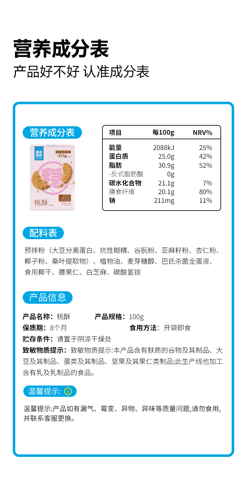 糖友厨房 桃酥 0白面粉0反式脂肪酸 100g 宝石蓝(单位:盒)