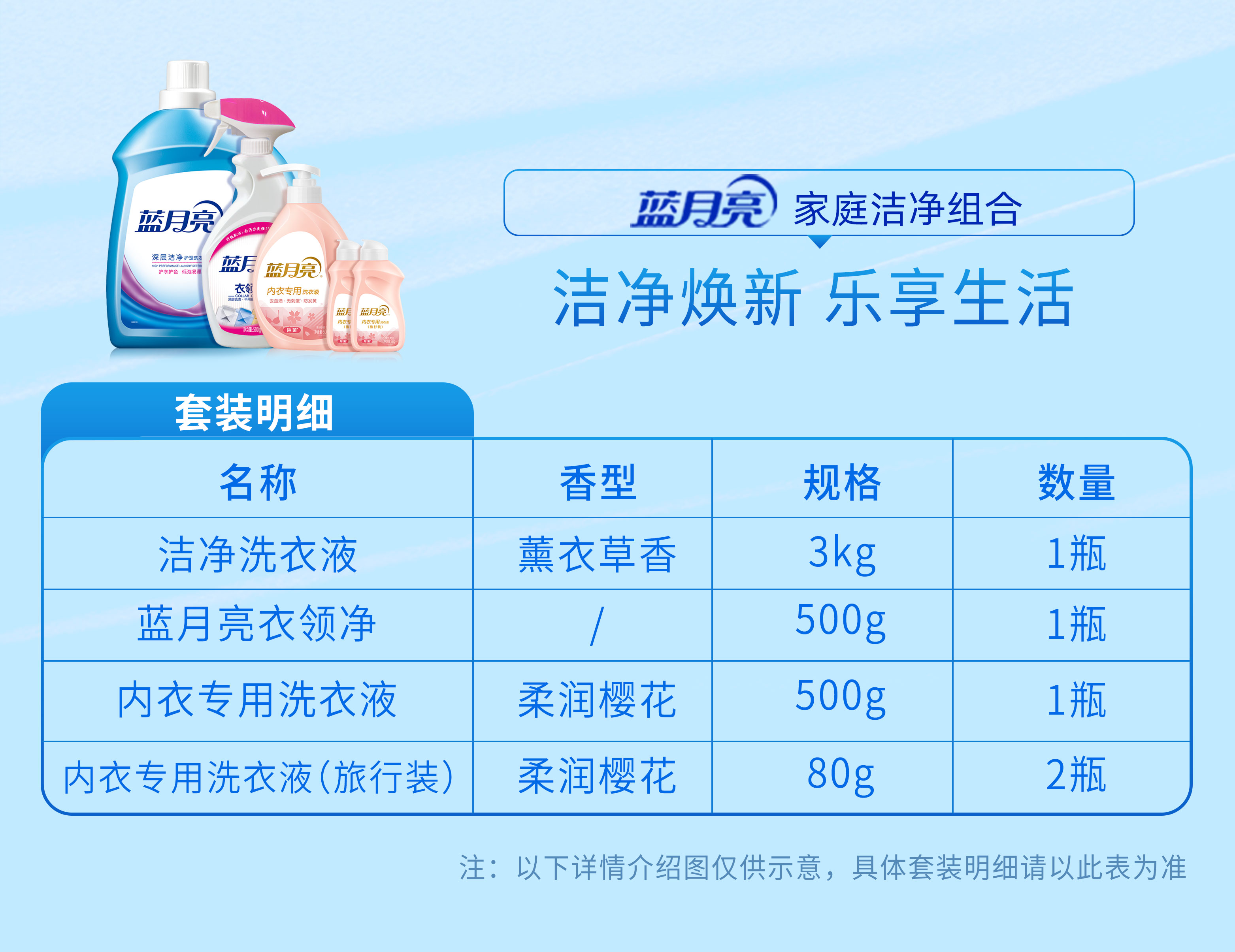 蓝月亮薰洁净3kg+衣领净500g+内衣洗500g+旅行装80g*2 80001783(单位:套) 蓝色