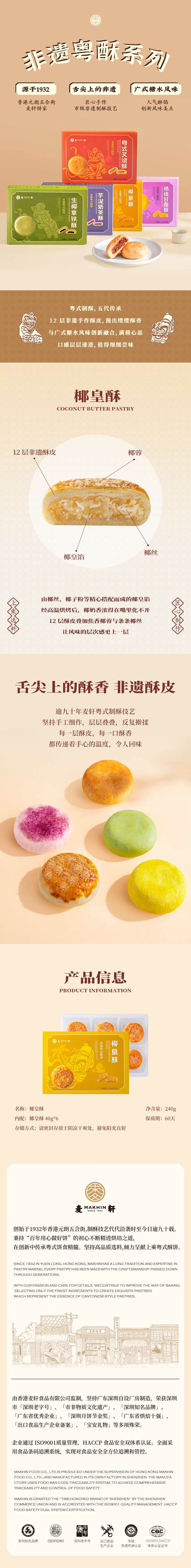 麦轩 椰皇酥 240g*2盒 每一层酥皮每一口酥香 香槟黄(单位:组)