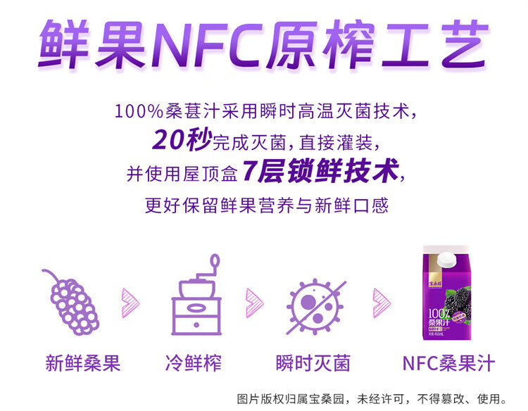 宝桑园(bosun) 100%桑果汁 468ml*4盒 果汁饮品 紫色(单位:组)