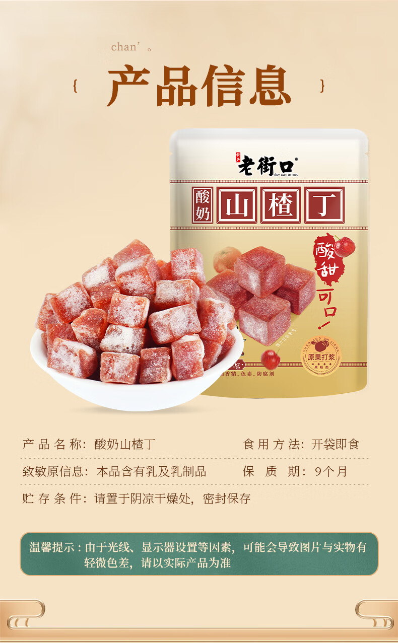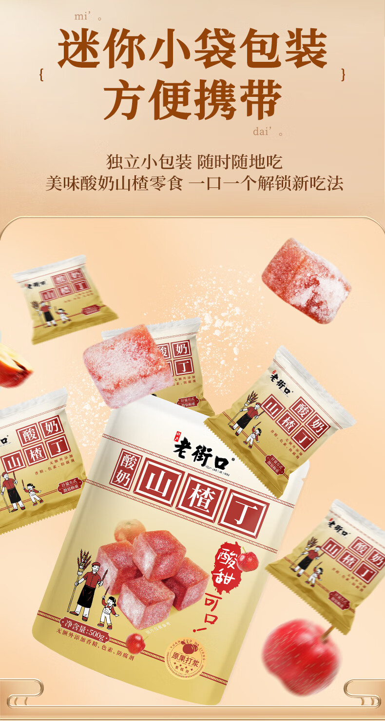 老街口 酸奶山楂丁 450g*1袋 山楂块休闲零食 象牙色(单位:袋)