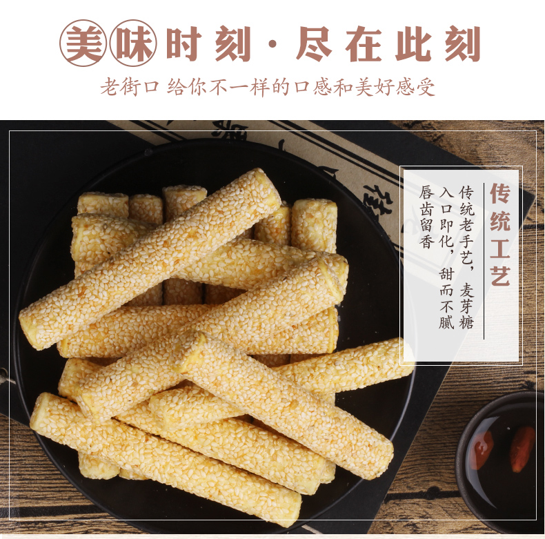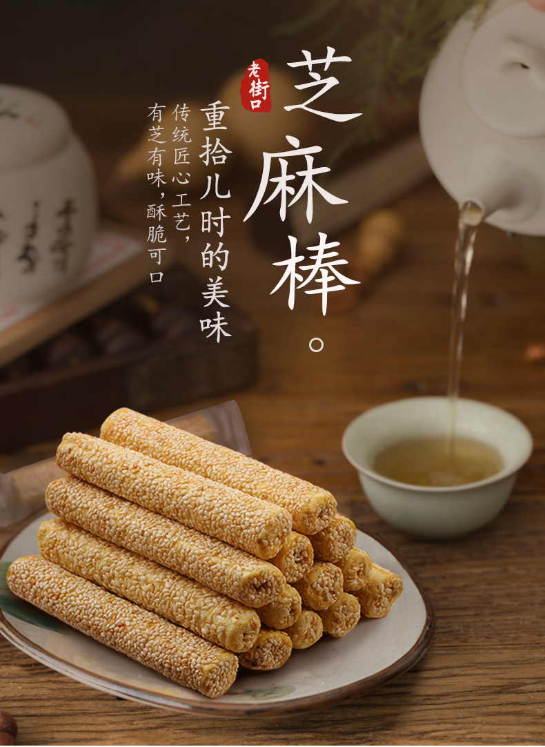 老街口 芝麻杆 250g*1袋 纯正手工传统芝麻棒 象牙色(单位:袋)