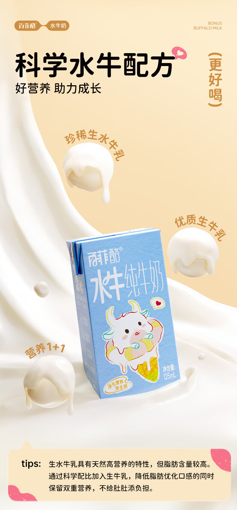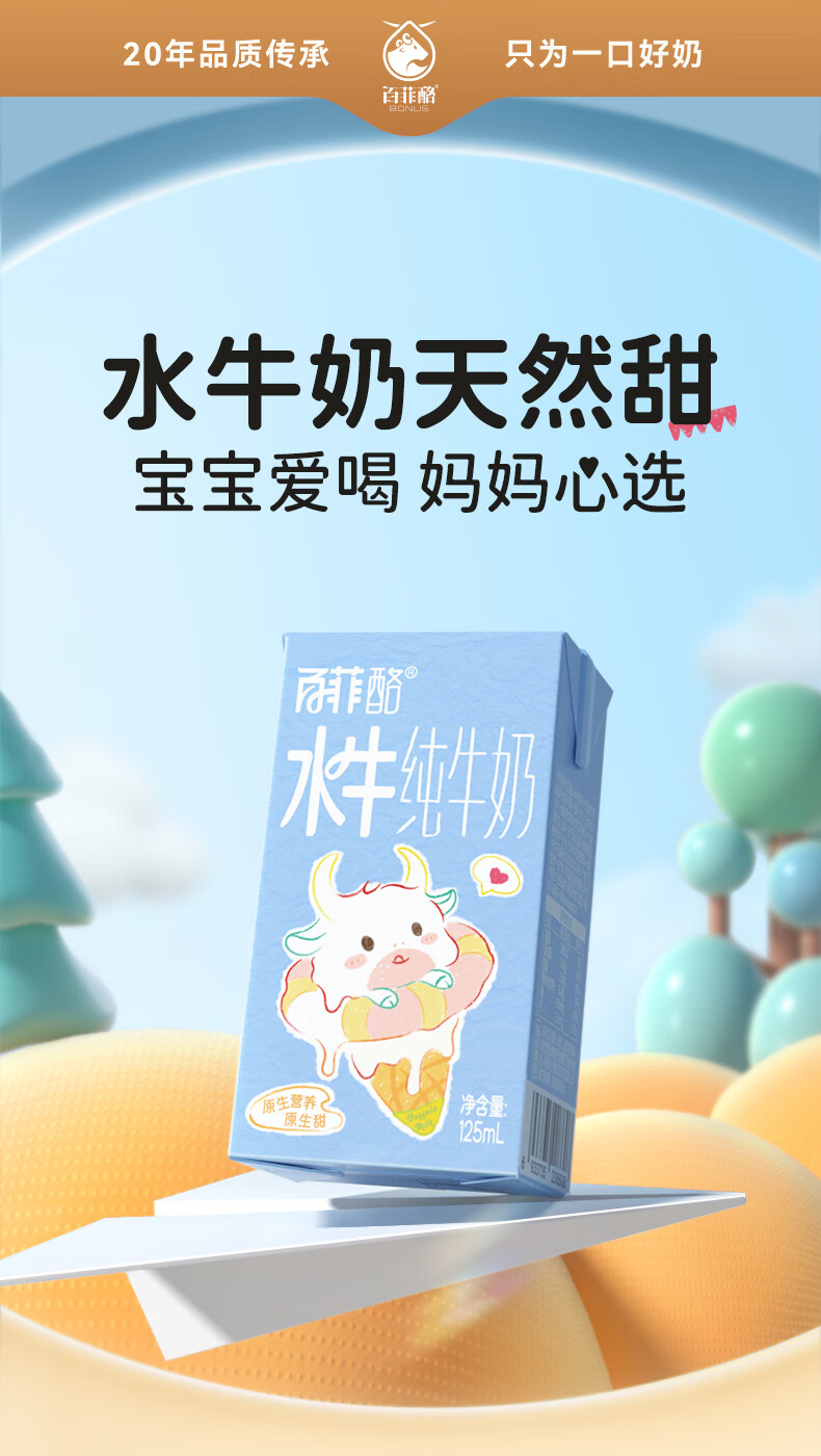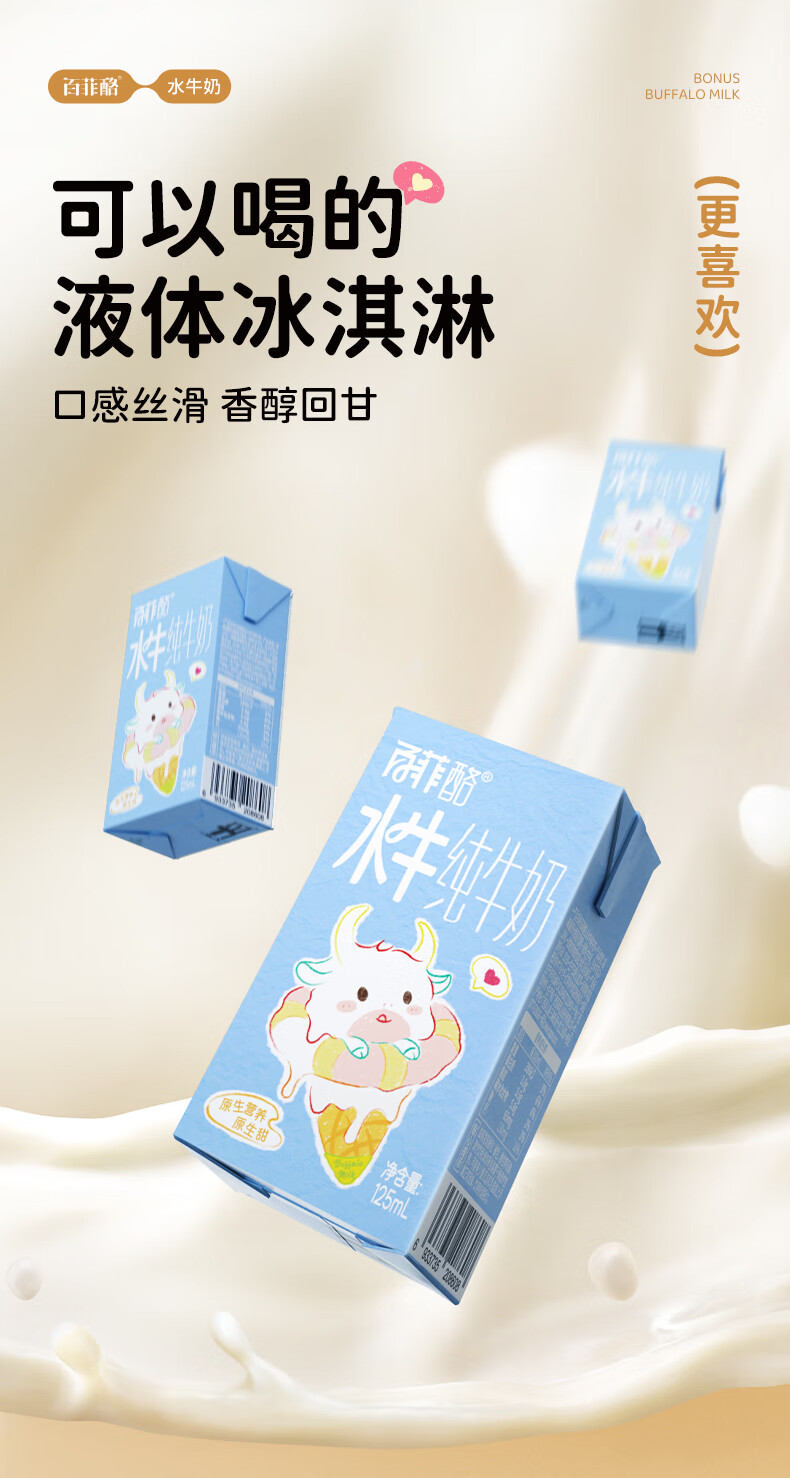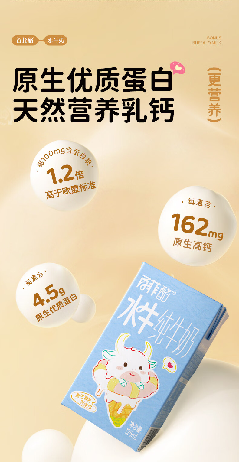 百菲酪 水牛纯牛奶 125ml*9盒/箱 纯牛奶儿童 营养早餐 天蓝色(单位:箱)