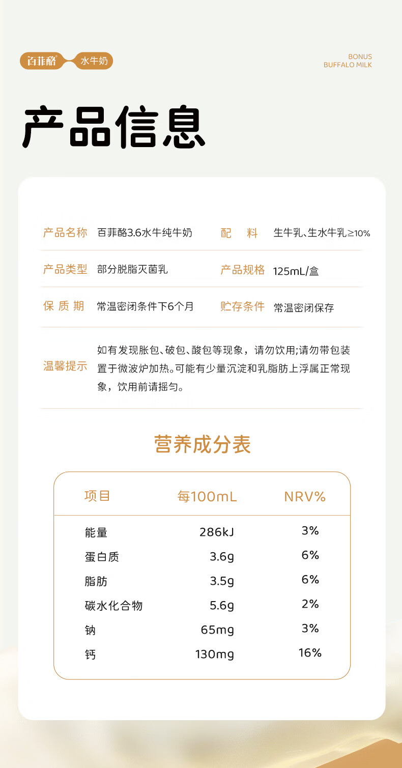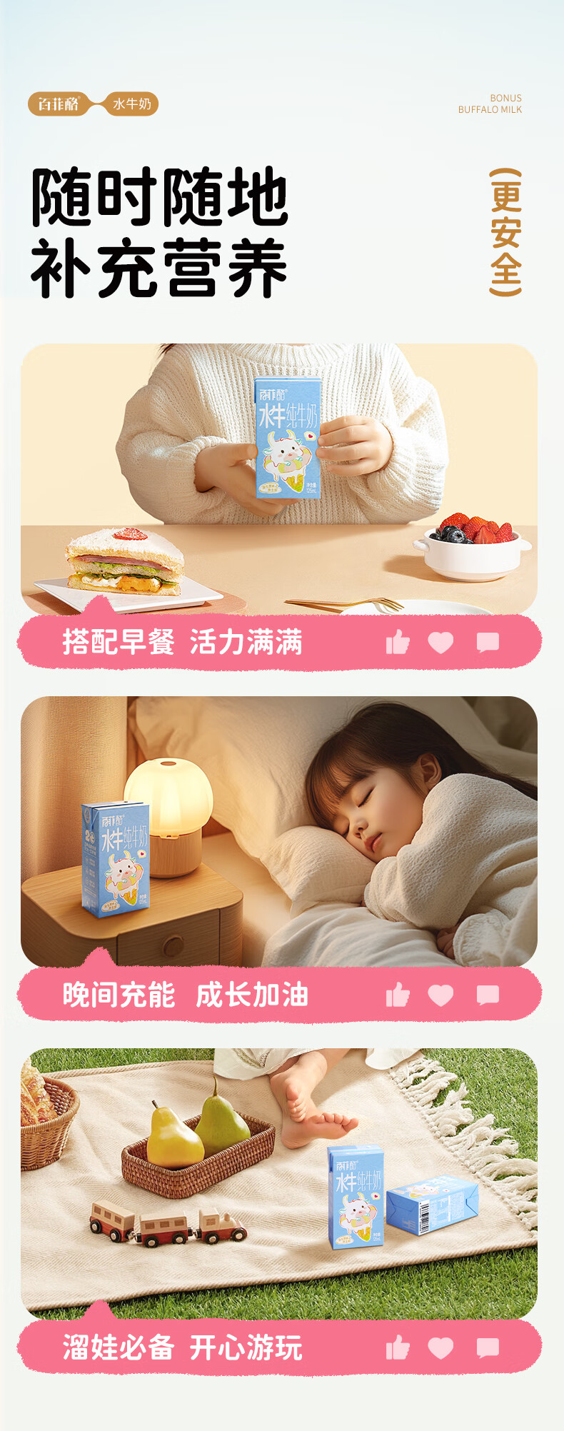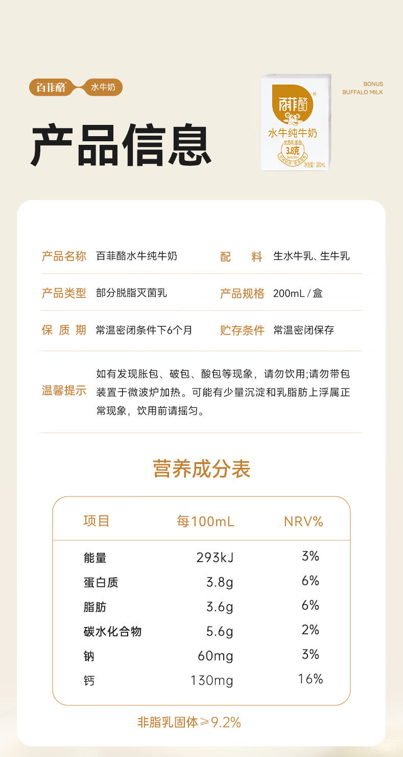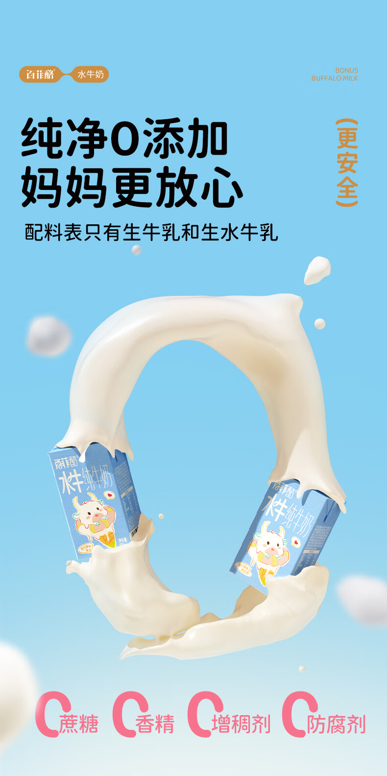 百菲酪 水牛纯牛奶 125ml*9盒/箱 纯牛奶儿童 营养早餐 天蓝色(单位:箱)