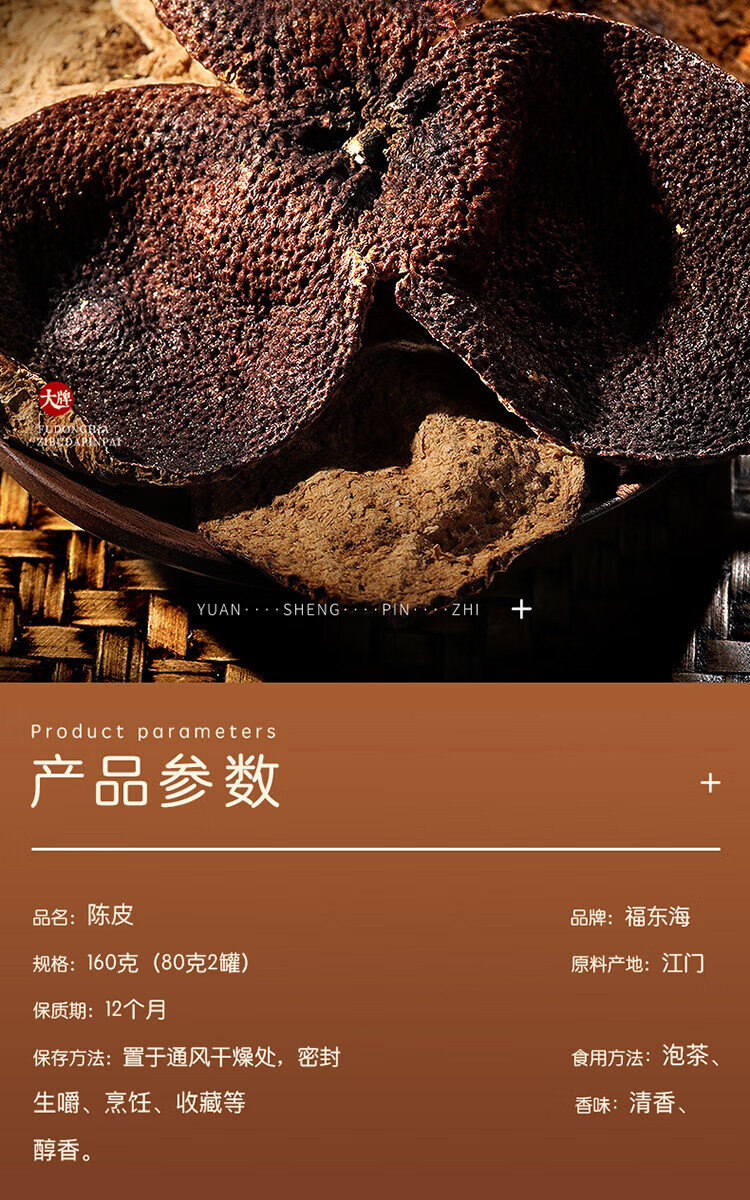 福东海(fudonghai) 新会陈皮干茶 80g*2瓶 泡水 褐色(单位:瓶)