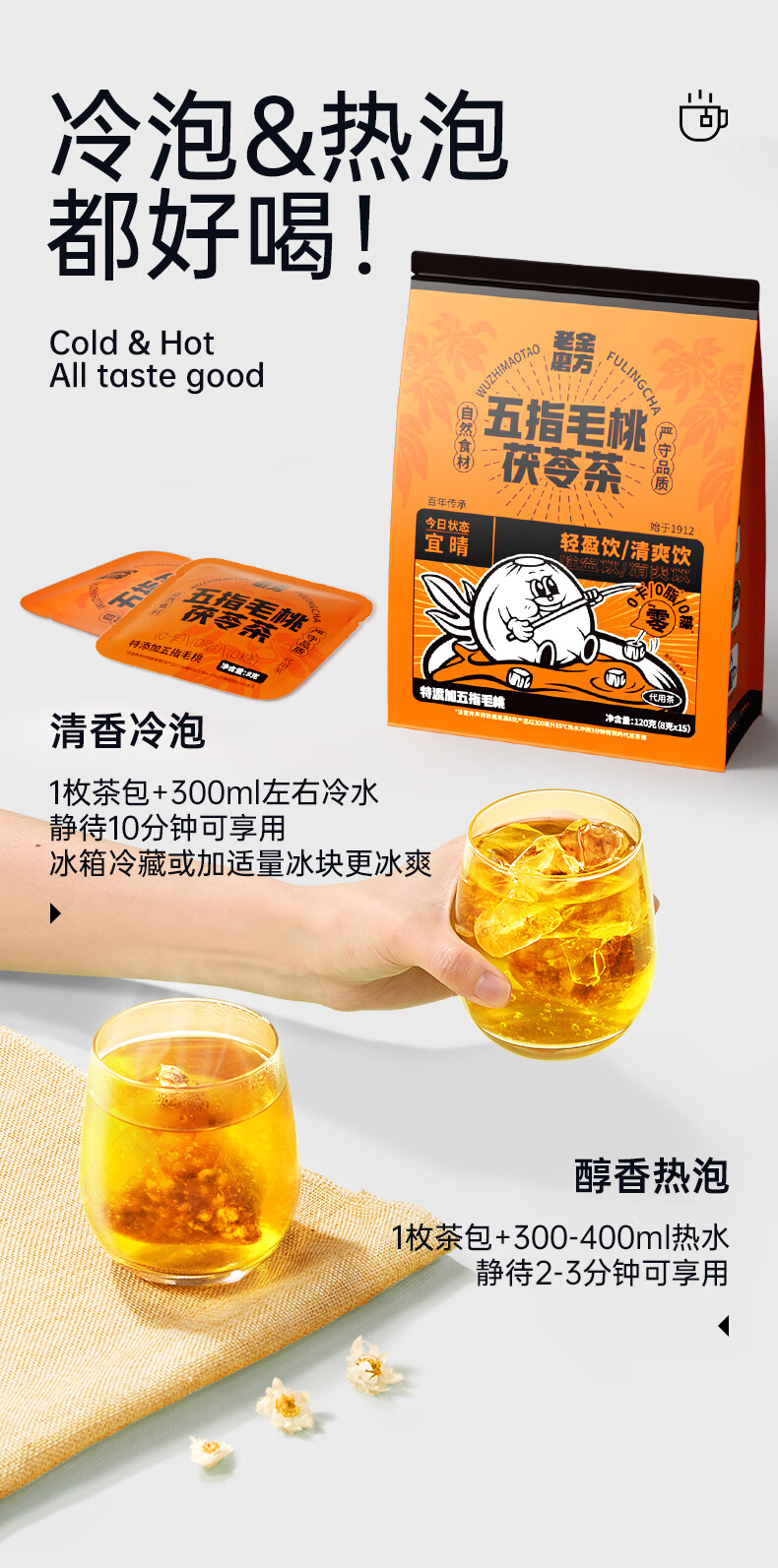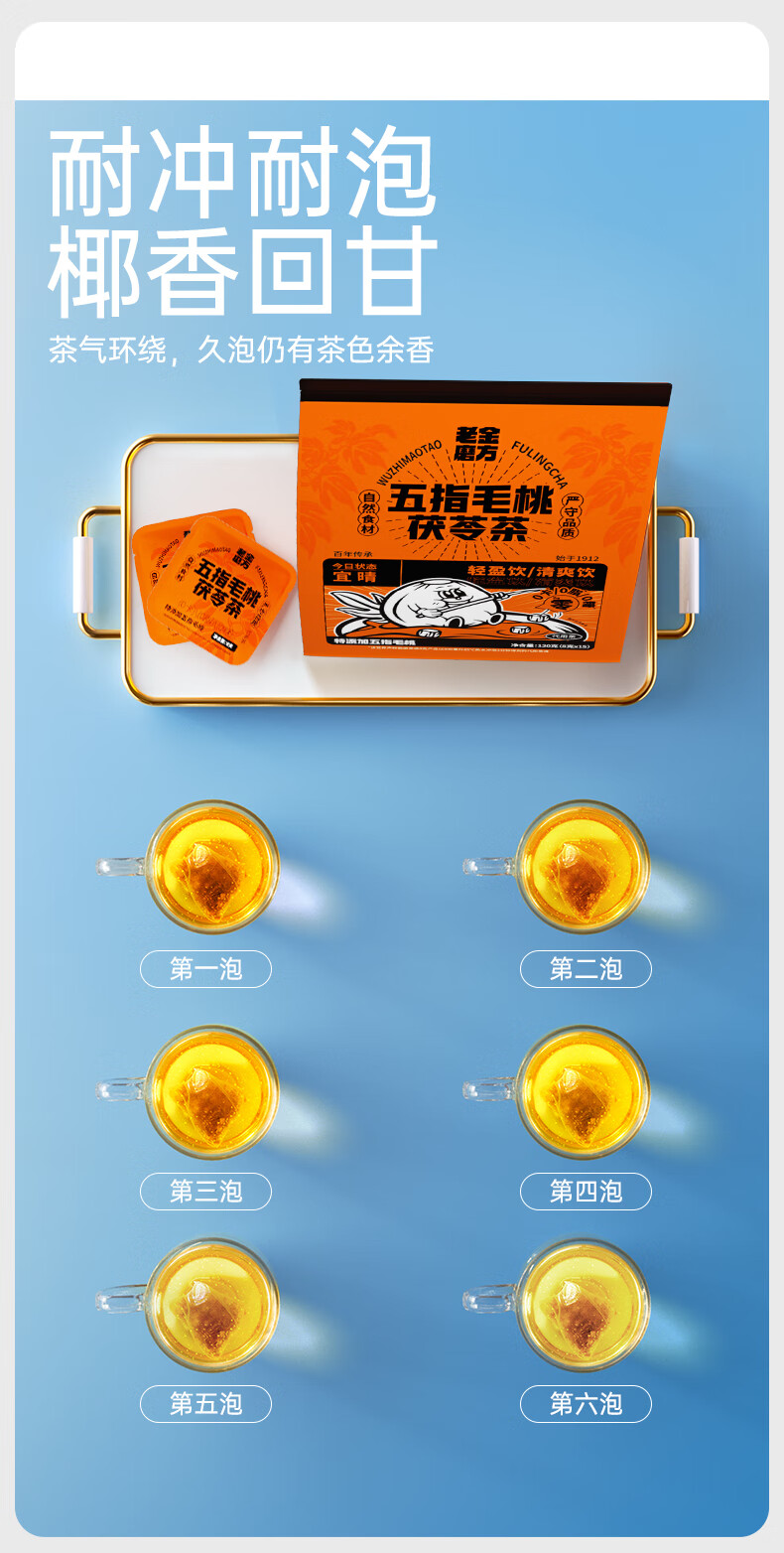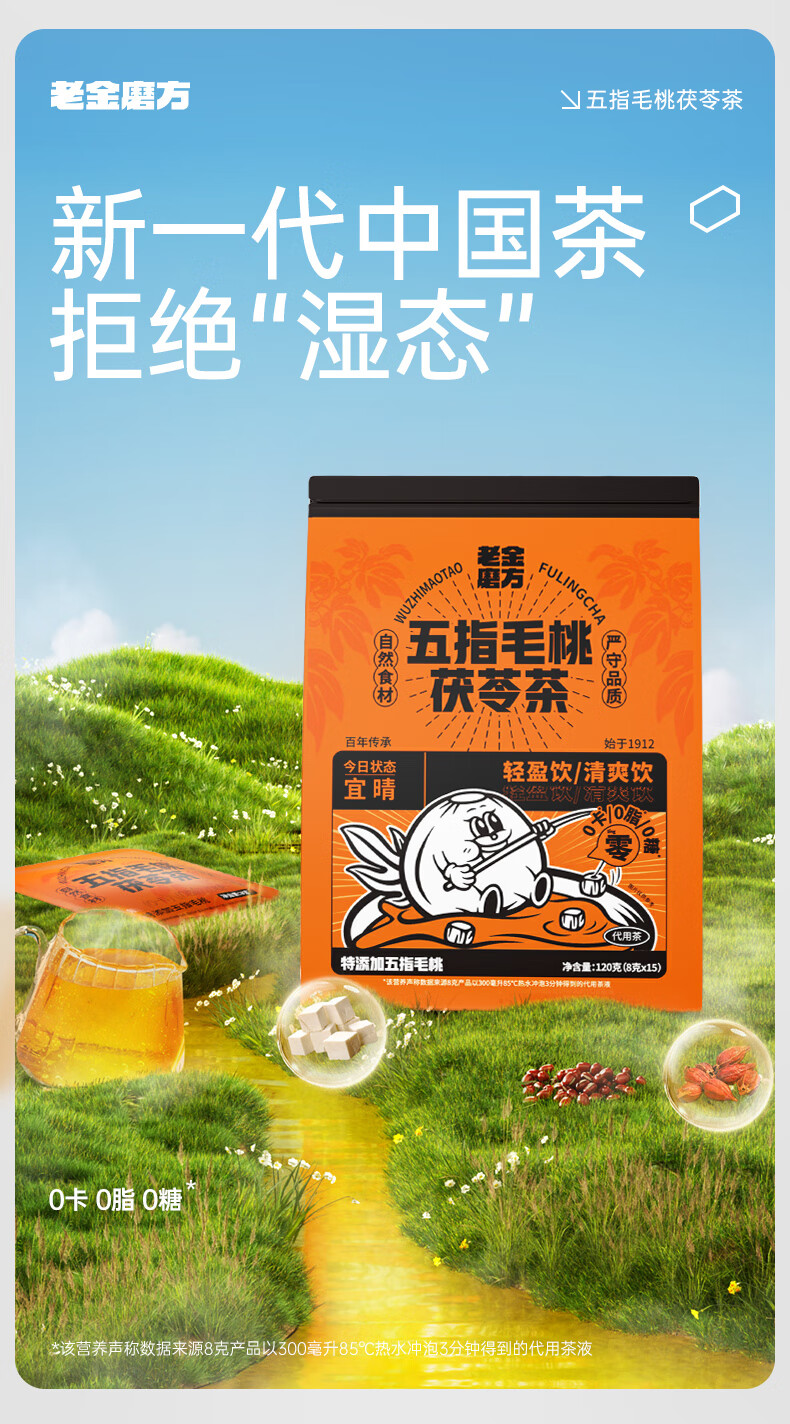 老金磨方 五指毛桃茯苓茶 120g*1袋 养生茶饮 橙色(单位:袋)