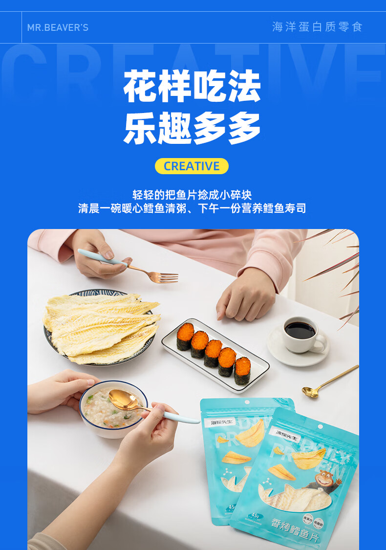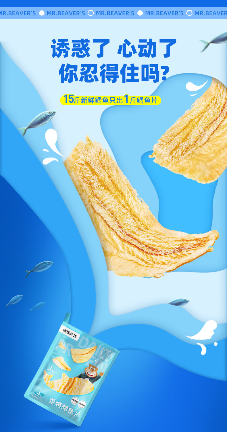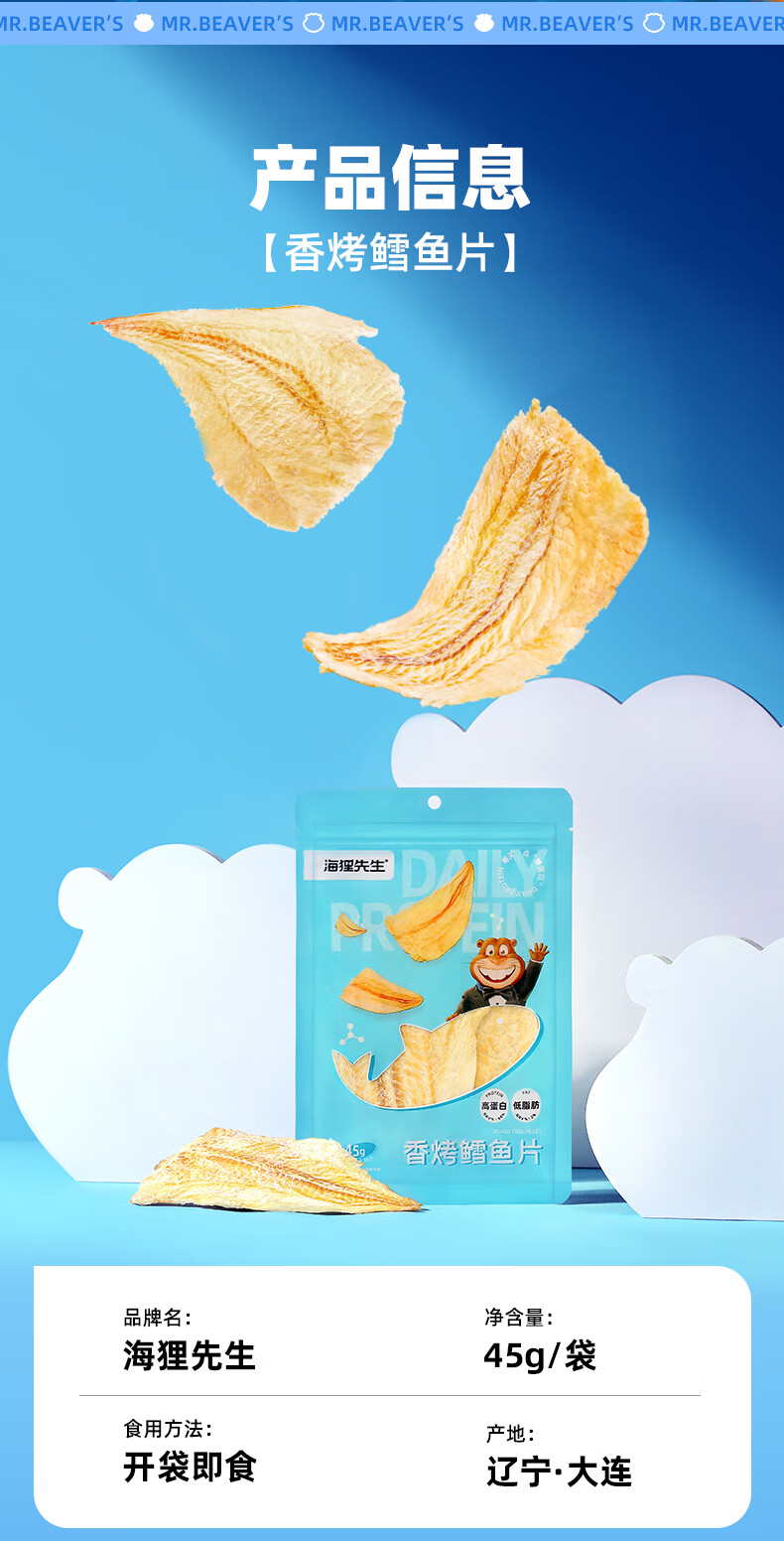 海狸先生 香烤鳕鱼片 45g*4袋 大连特产烤鱼片 水蓝色(单位:组)
