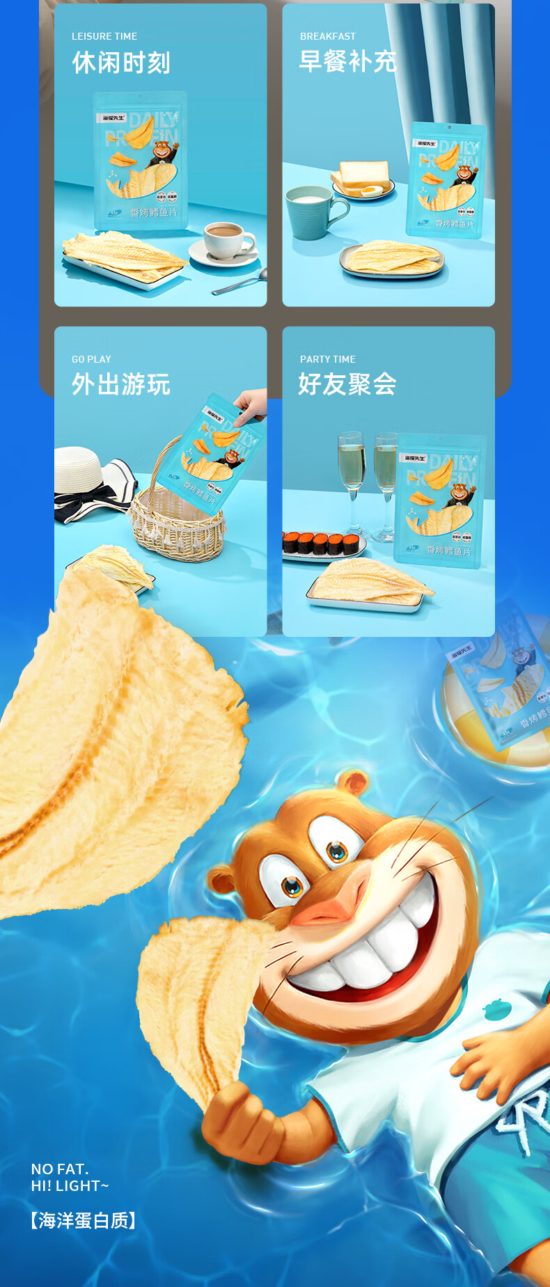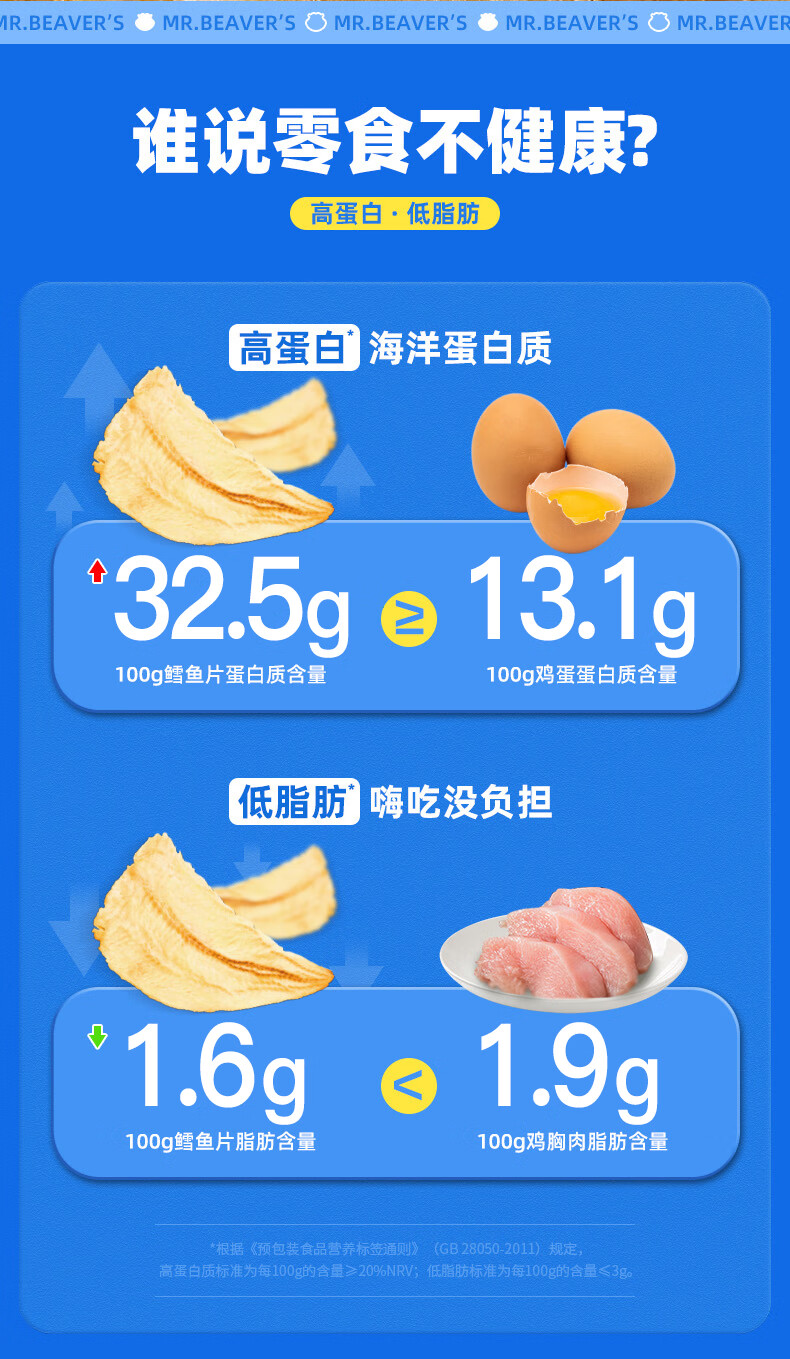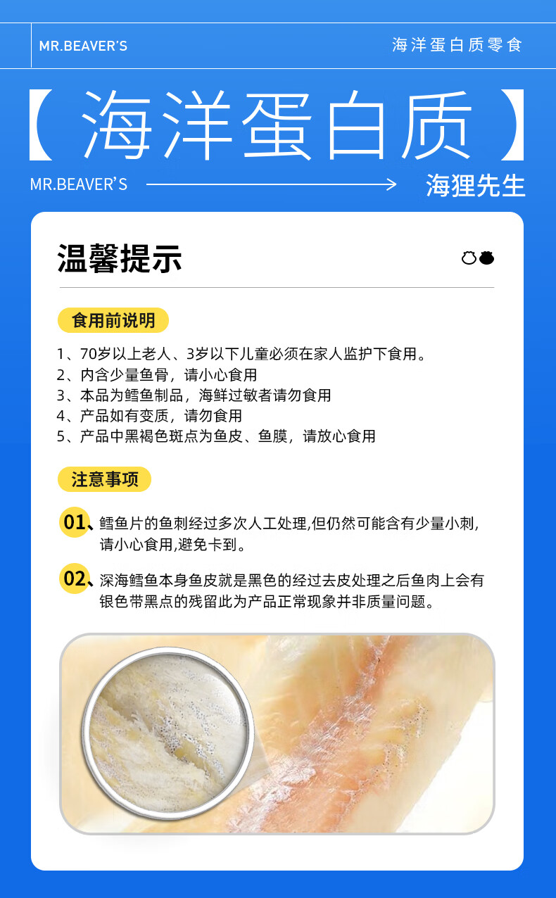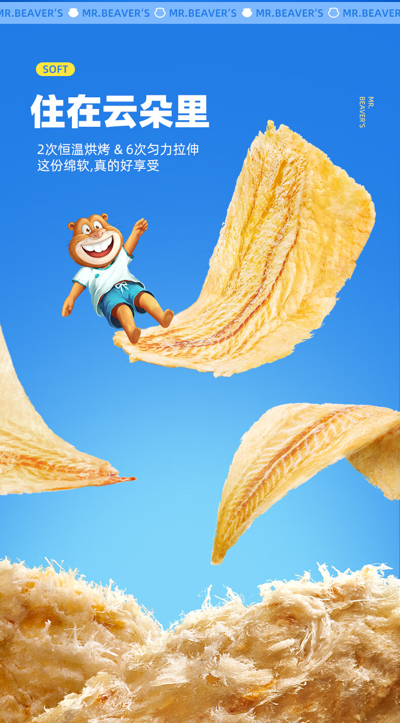 海狸先生 香烤鳕鱼片 45g*4袋 大连特产烤鱼片 水蓝色(单位:组)