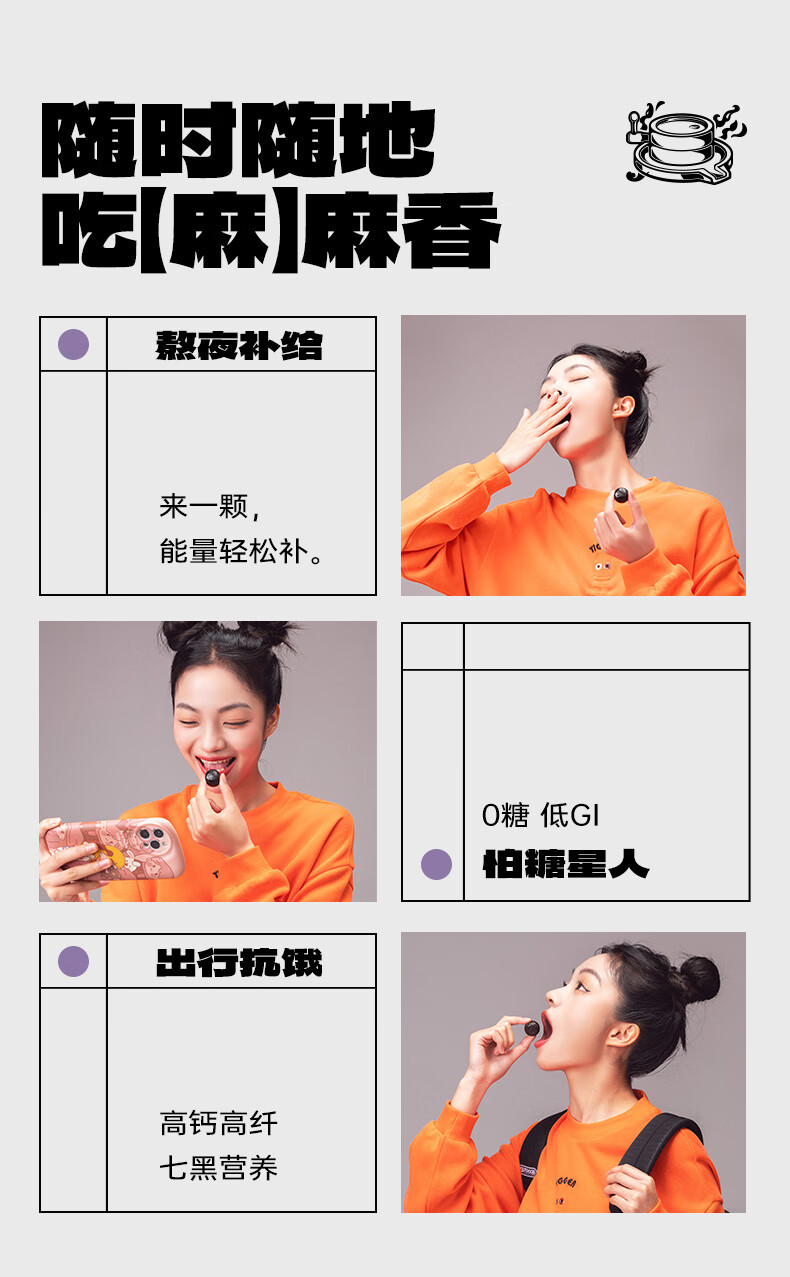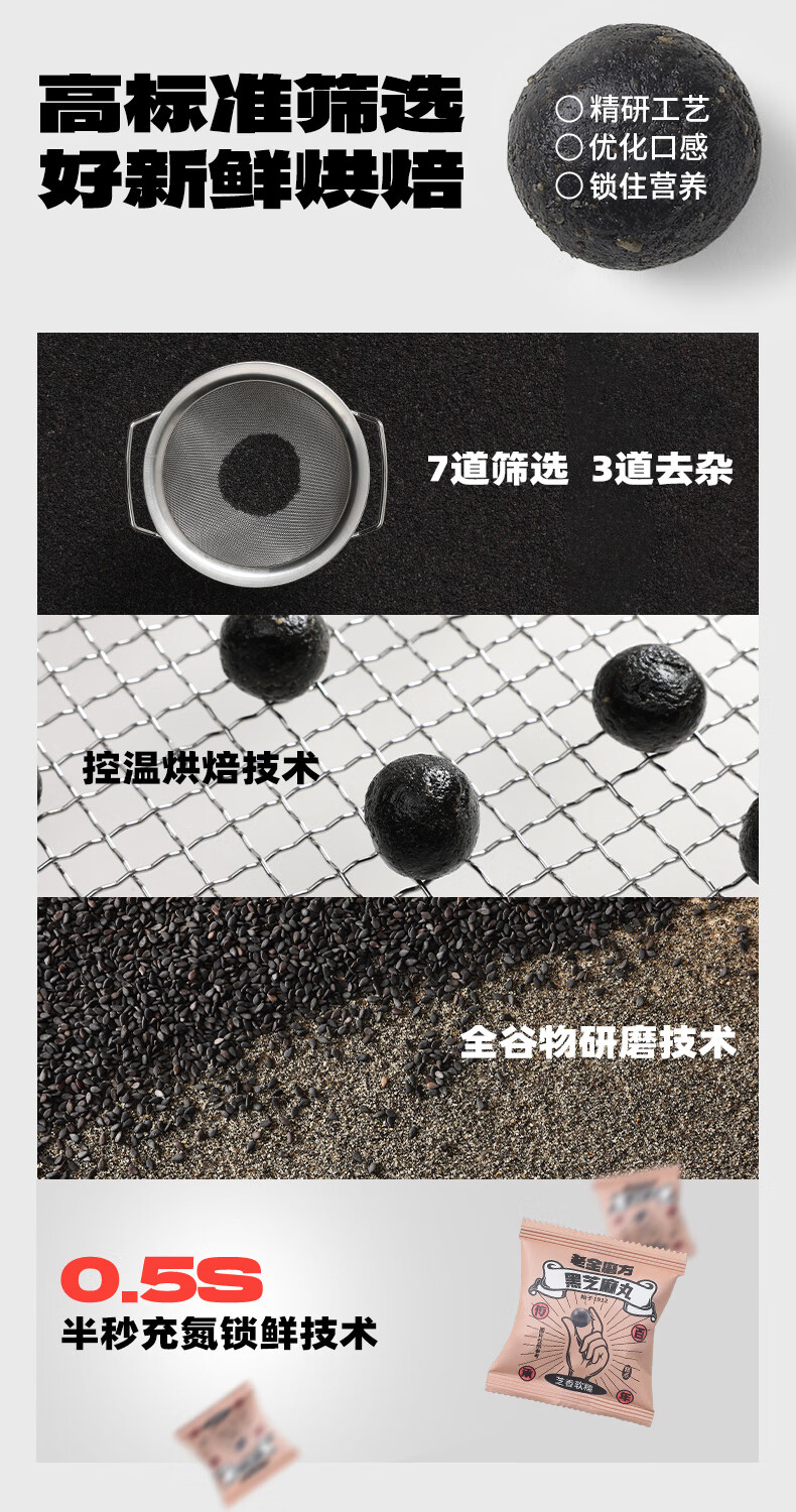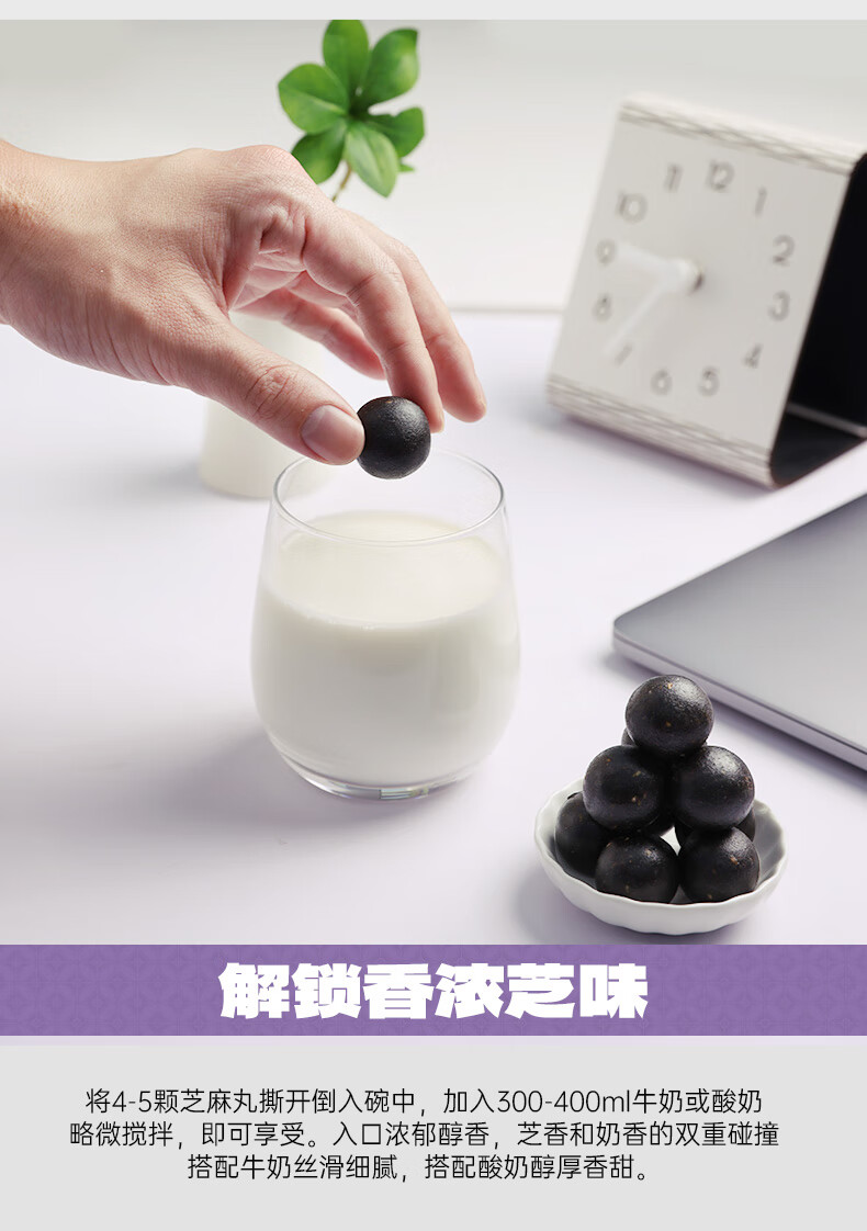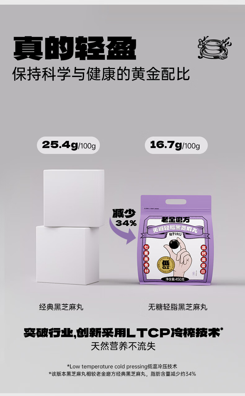 老金磨方 无糖轻脂黑芝麻丸 450g*1袋 高钙高蛋白零食 紫色(单位:袋)