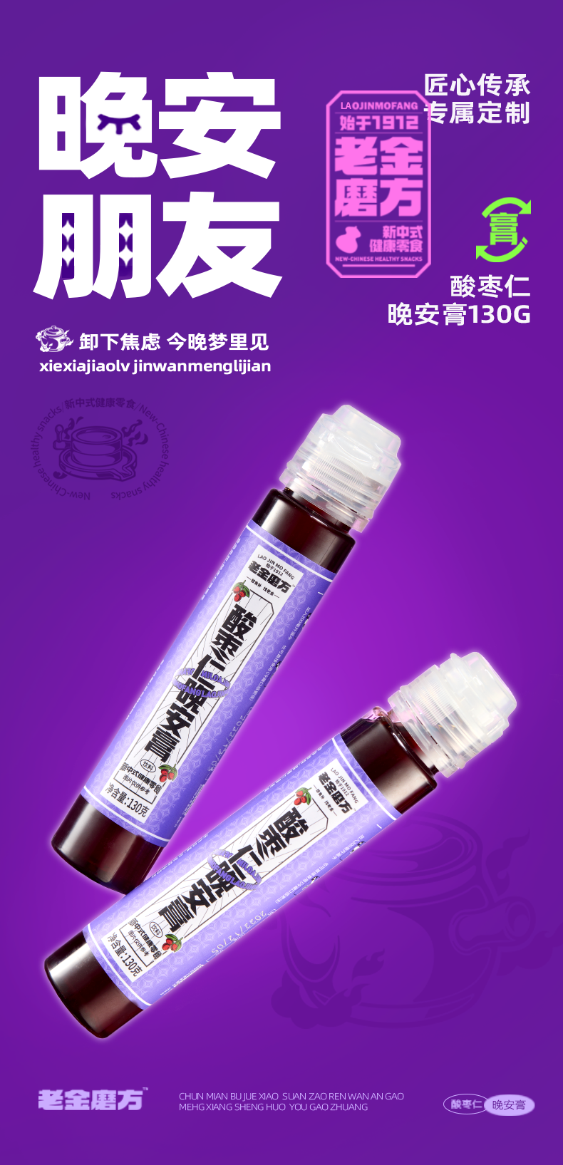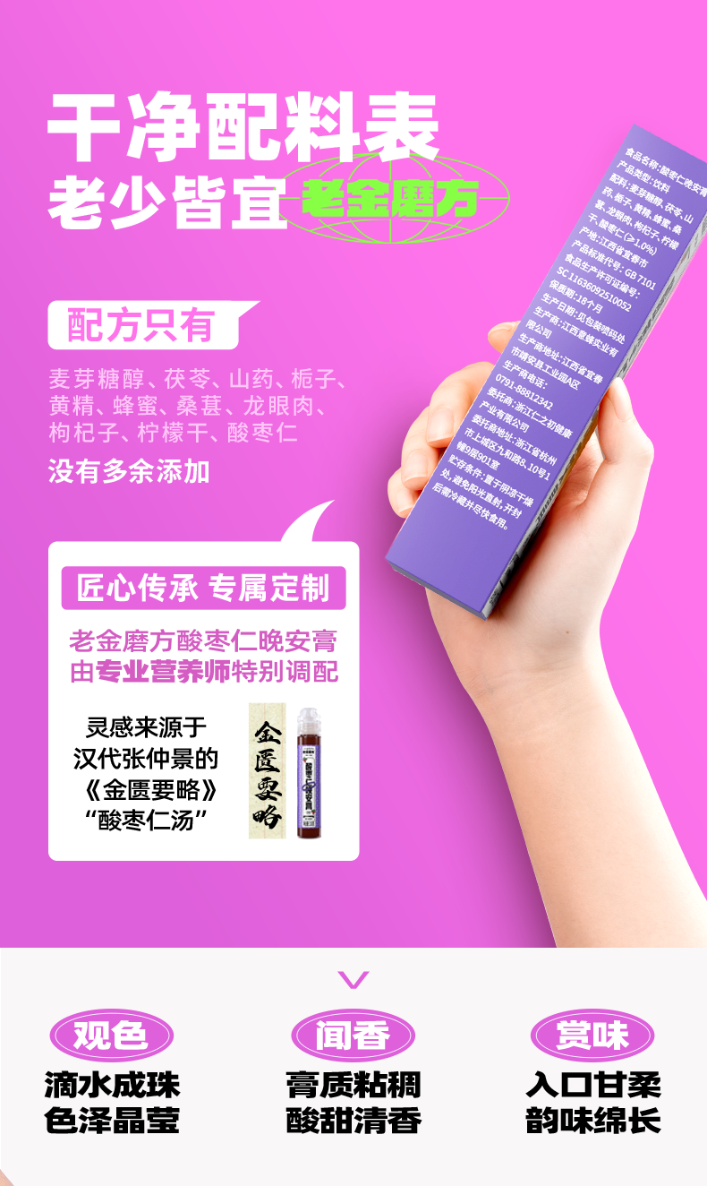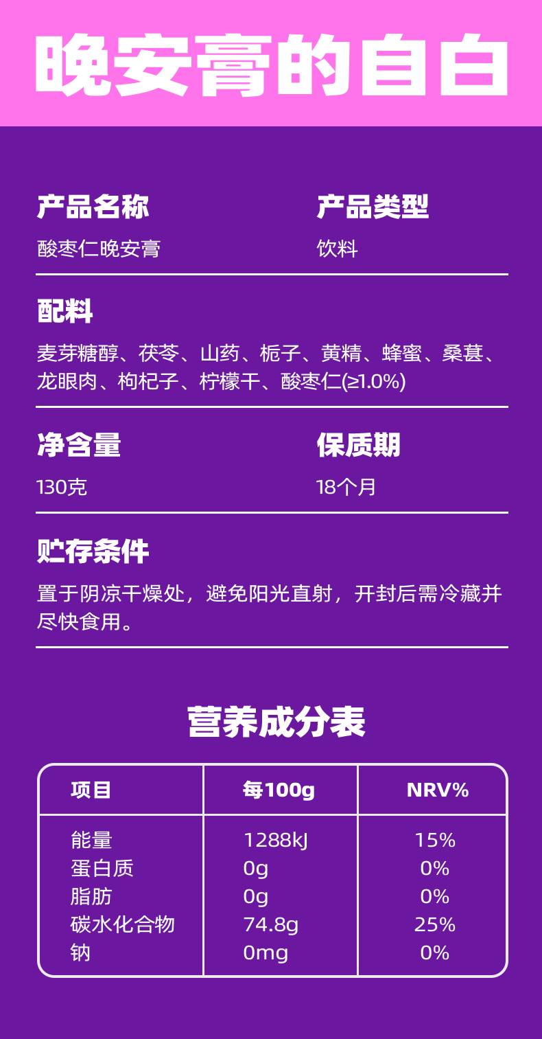 老金磨方 酸枣仁晚安膏 130g*1瓶 冲泡茶饮 紫色(单位:瓶)