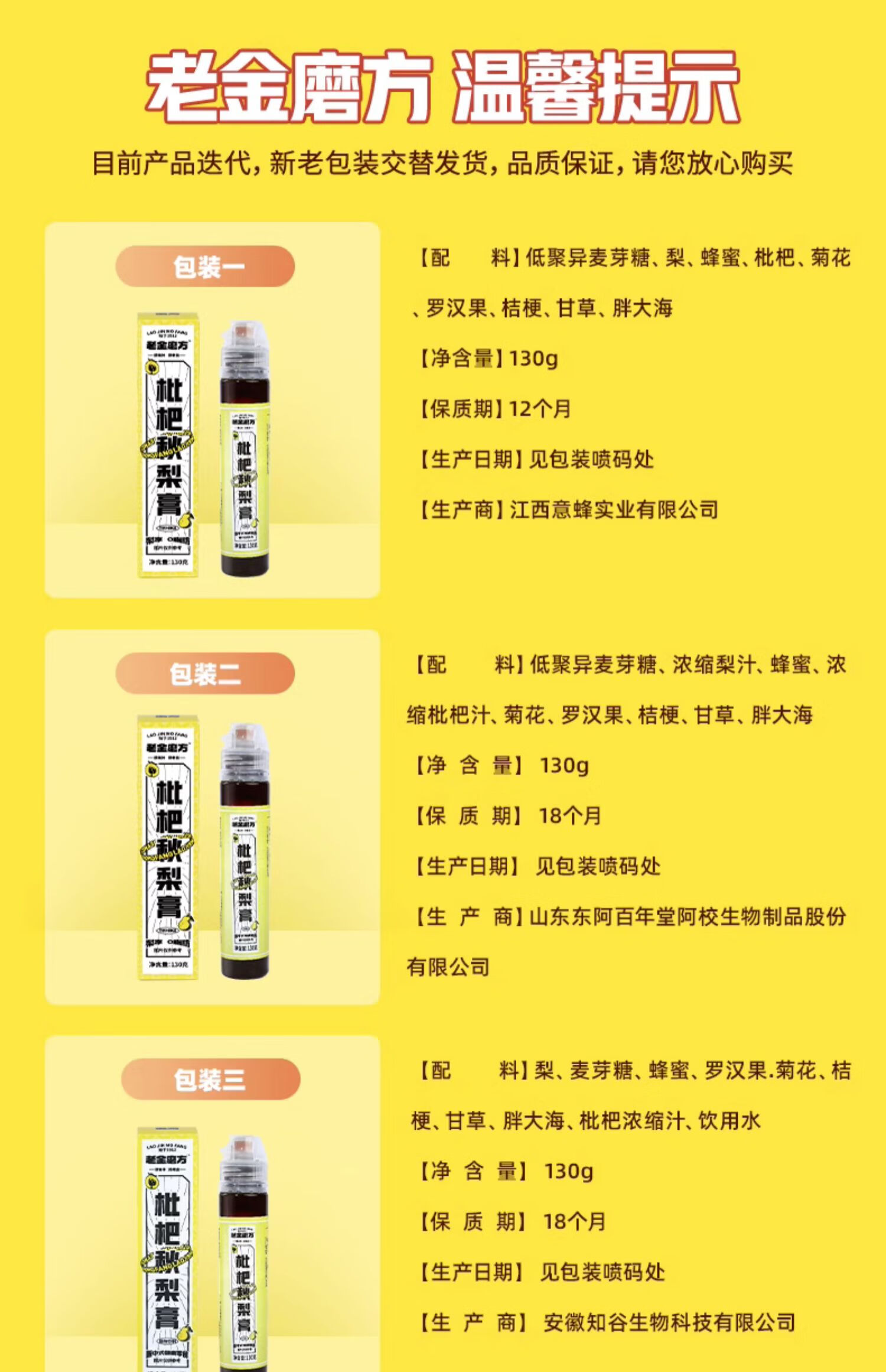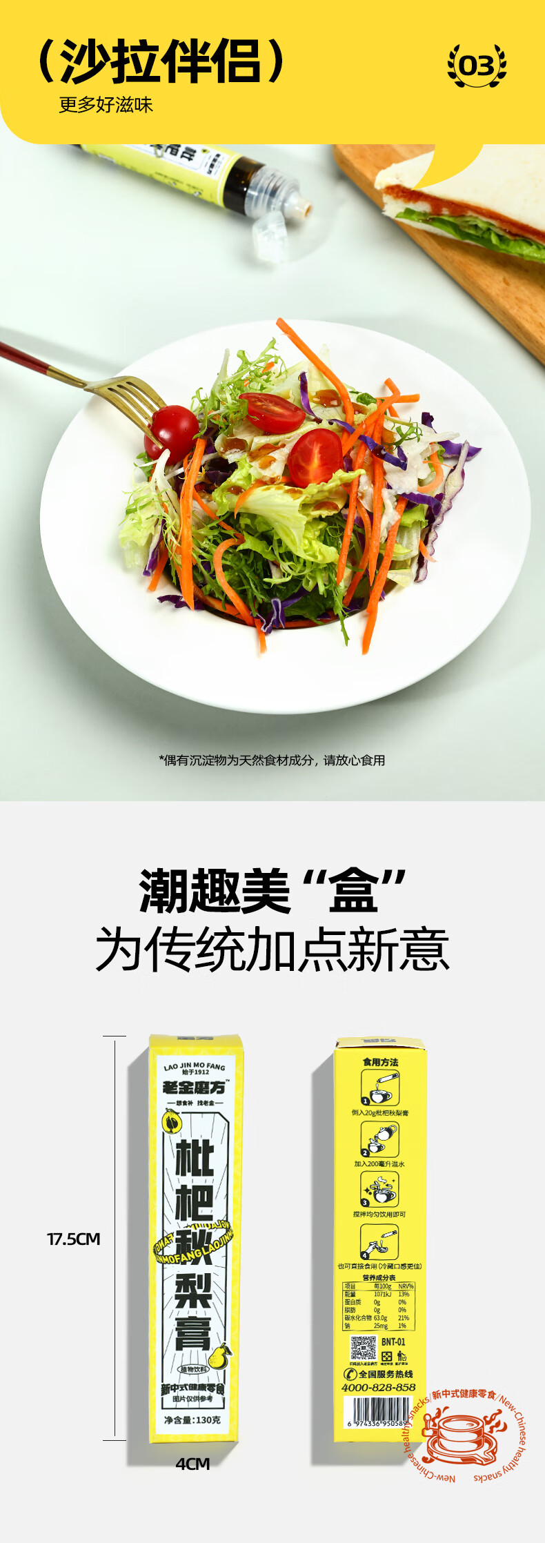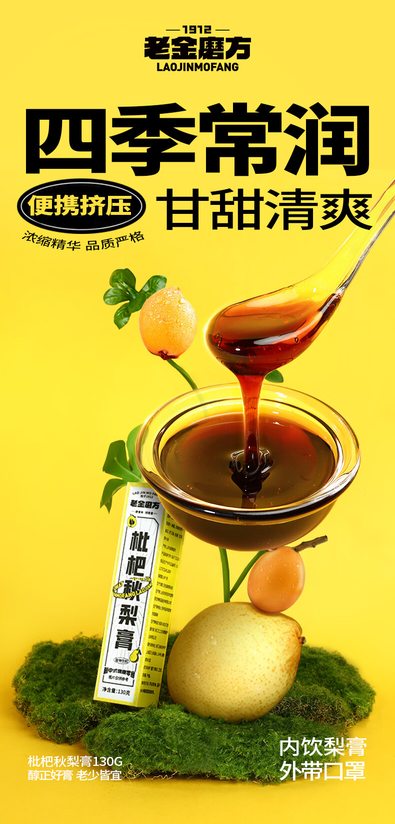 老金磨方 枇杷秋梨膏 130g*1瓶 润喉即食冲饮 黄色(单位:瓶)