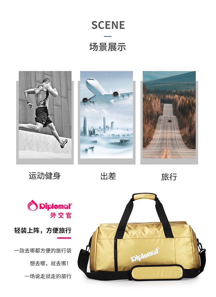 外交官(Diplomat) 多功能运动旅行包 YH-ZH721 49*25*25cm 香槟金色(单位:个)