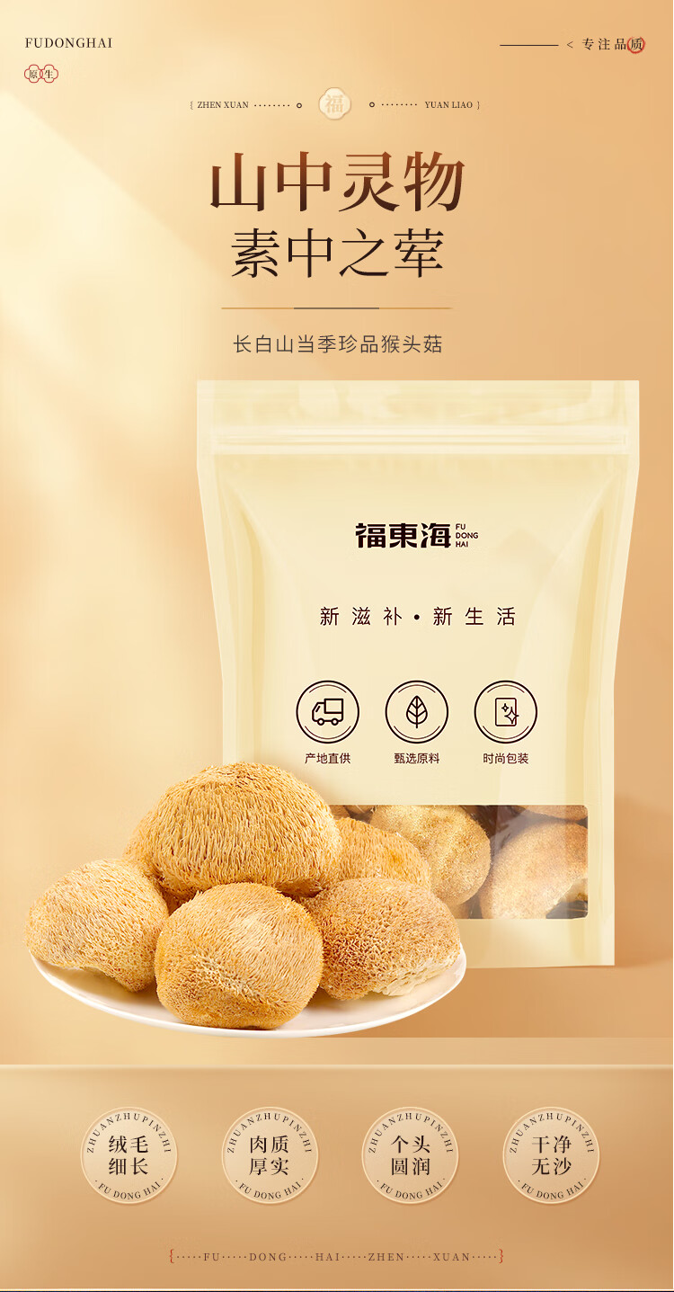 福东海(fudonghai) 猴头菇 250g*1袋 炖汤煲汤 黄色(单位:袋)