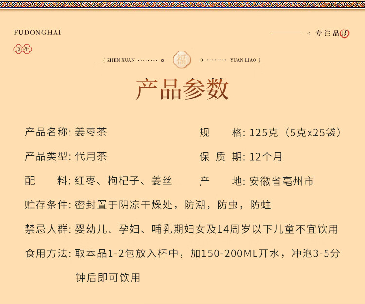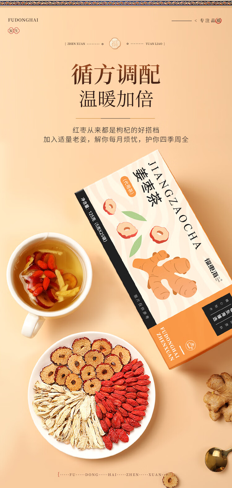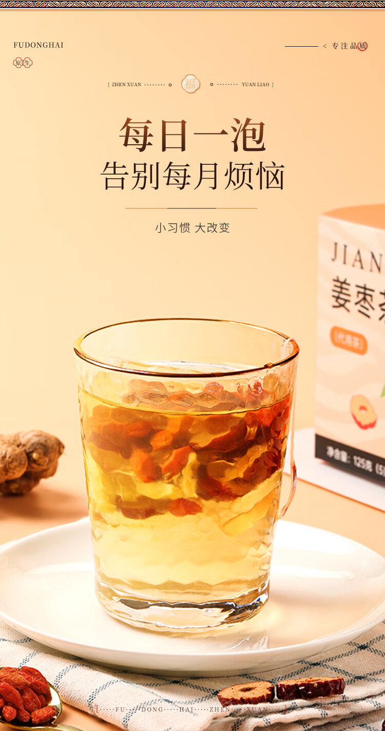 福东海(fudonghai) 姜枣茶 125g*1盒 暖身茶饮 玫瑰金(单位:盒)