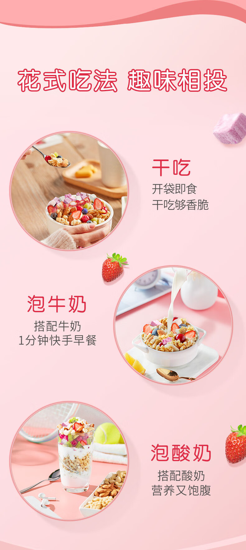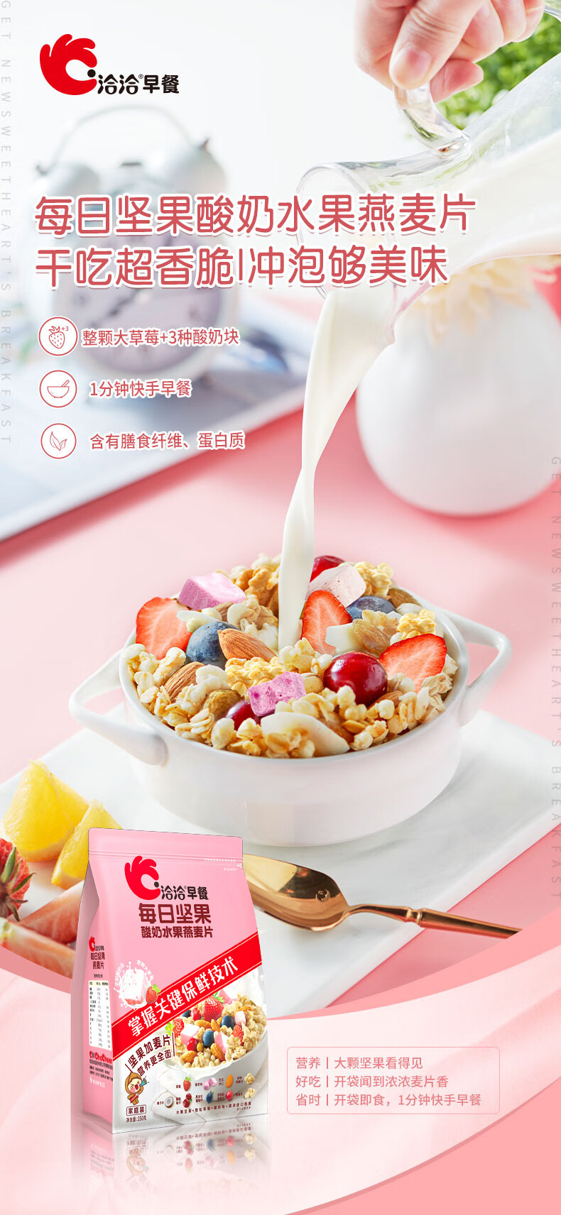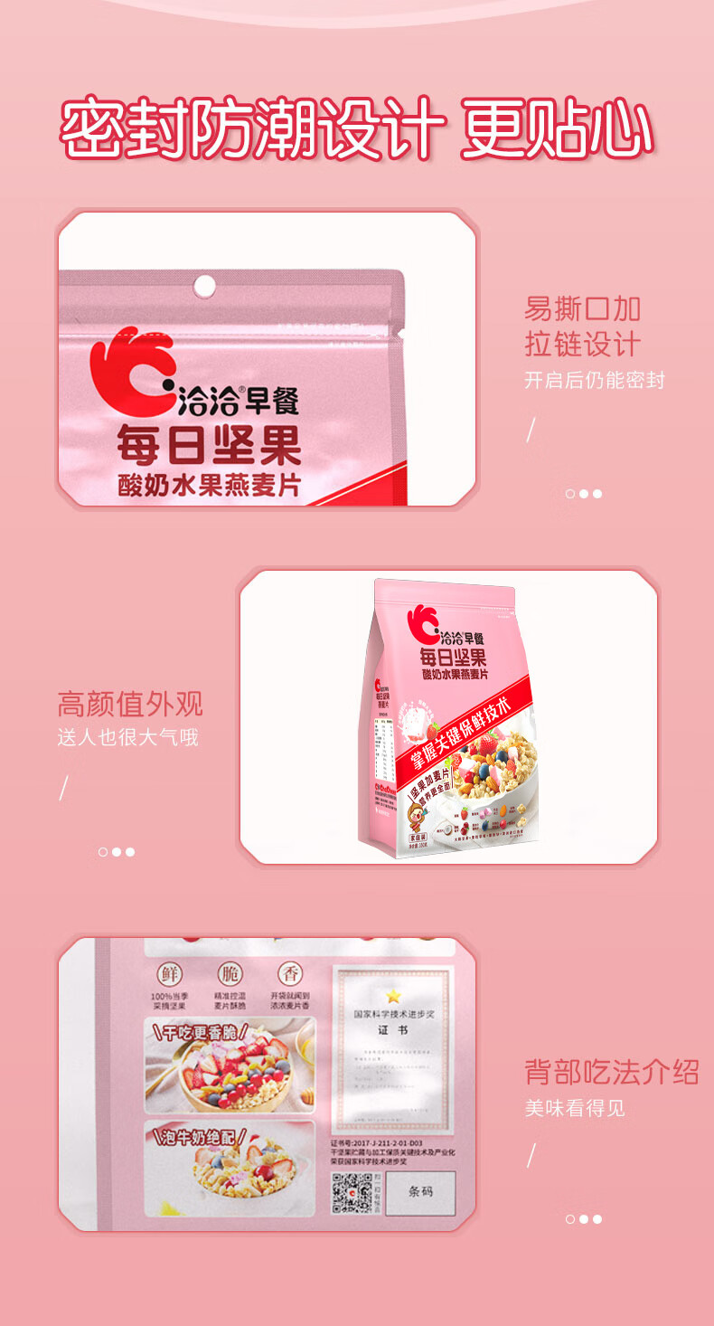 洽洽 每日坚果酸奶水果燕麦片 350g*3袋 速食代餐即食 粉色(单位:组)