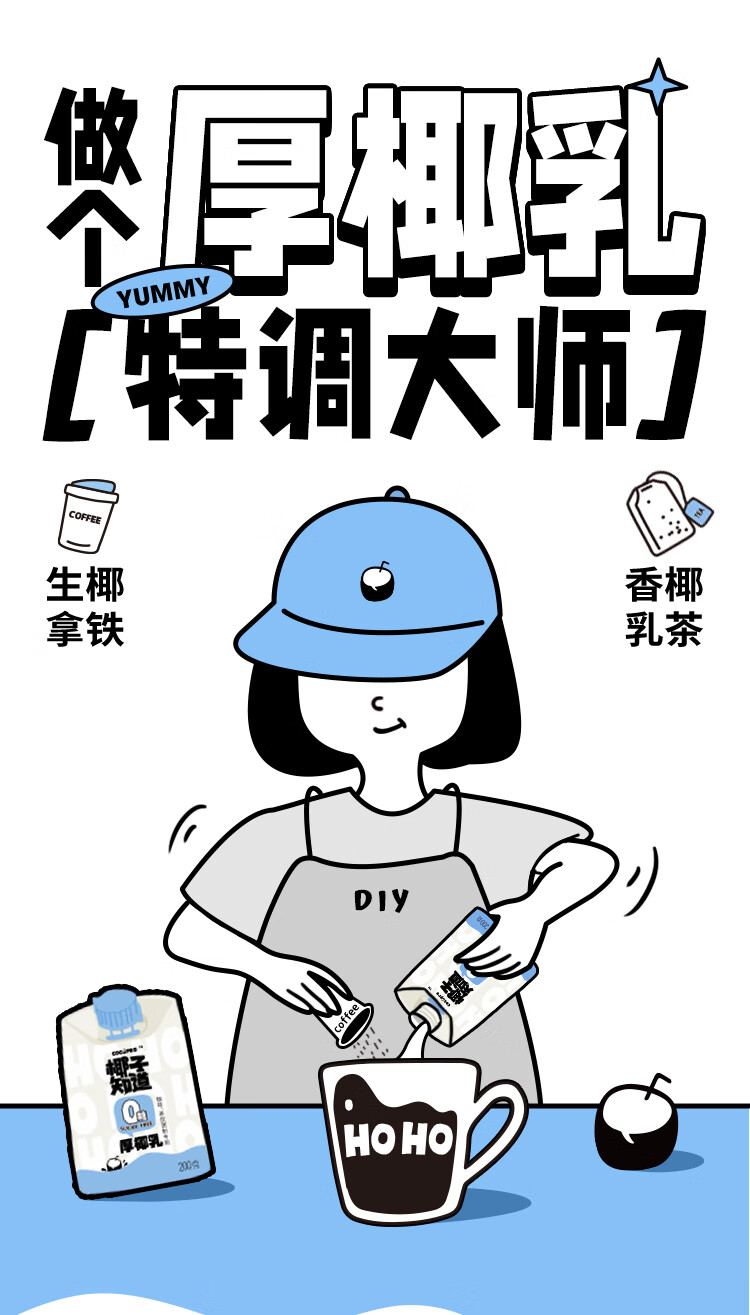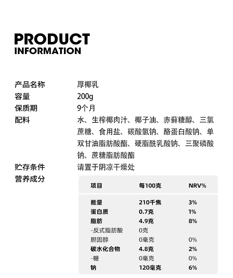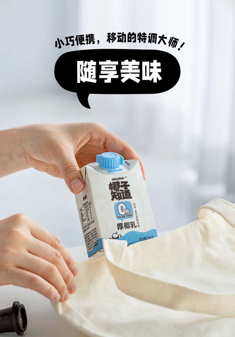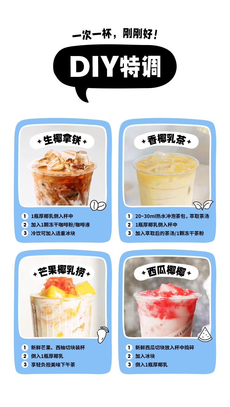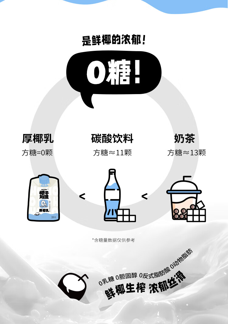 椰子知道 0糖厚椰乳 200g*9盒 咖啡奶茶伴侣 水蓝色(单位:箱)