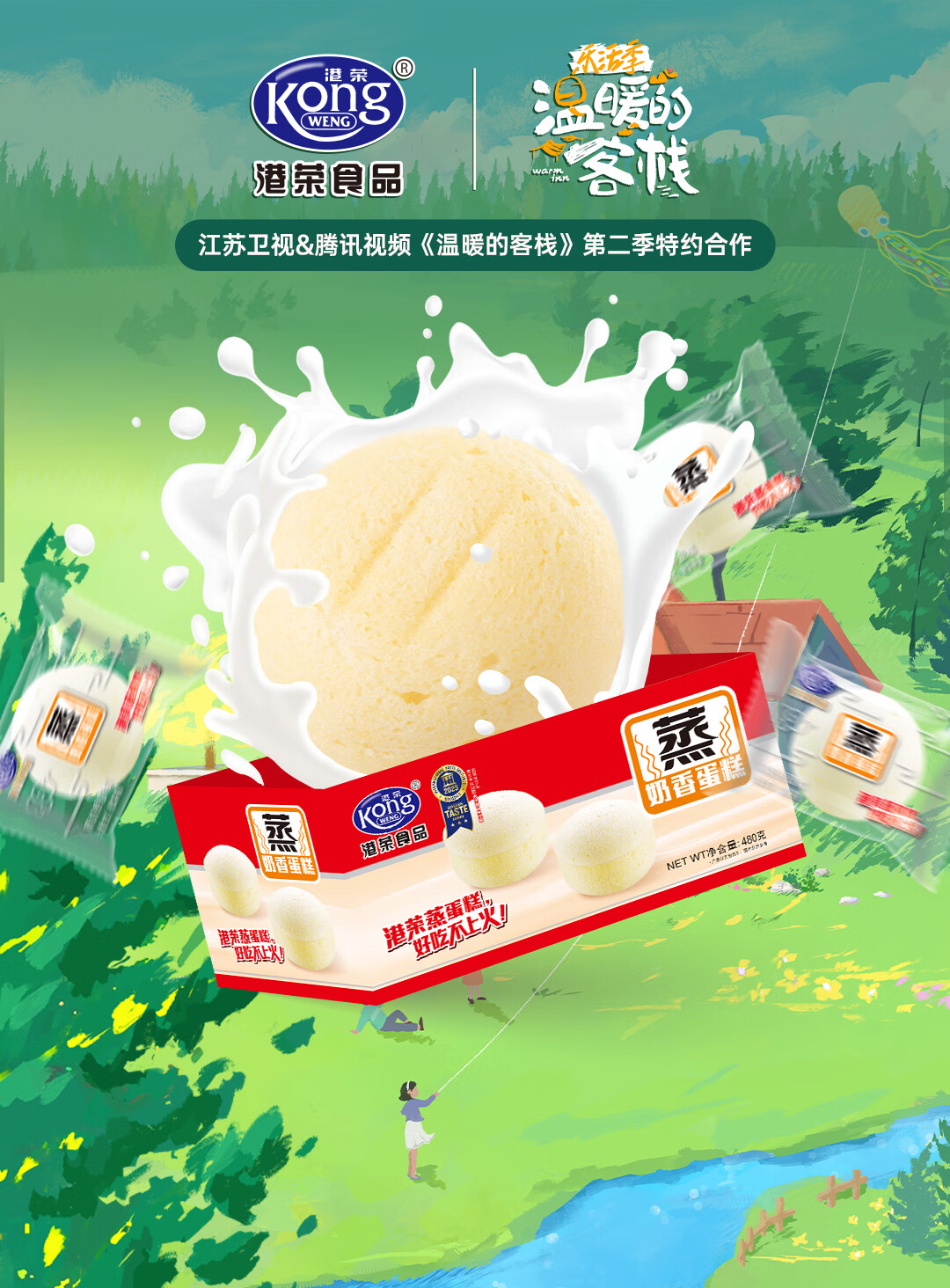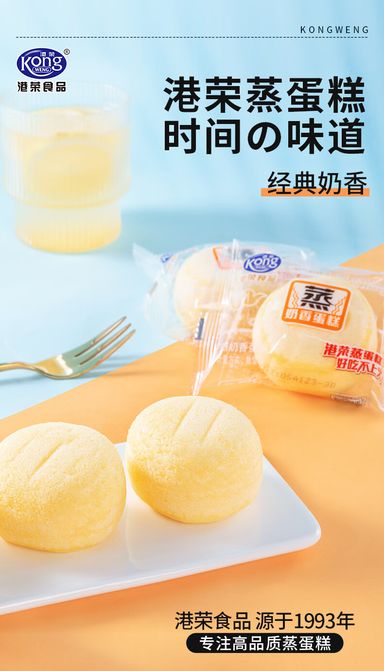 港荣 奶香味蒸蛋糕 480g*2箱 早餐食品 红色(单位:箱)