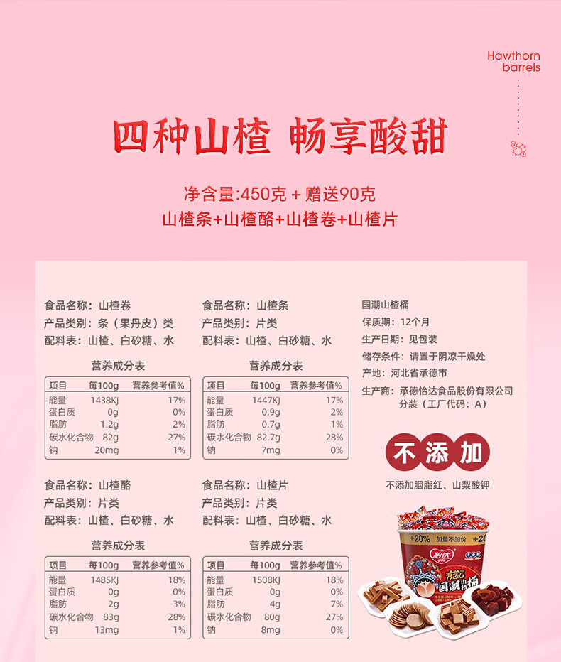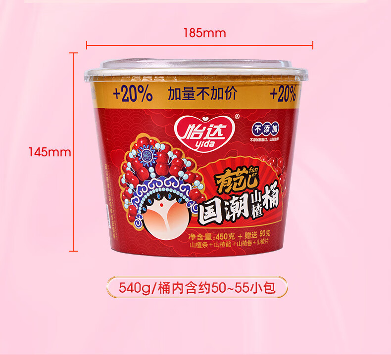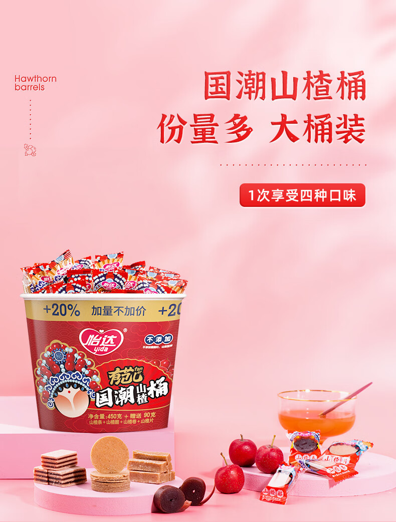 怡达(yida) 山楂国潮桶 540g*2 山楂片+条+酪+卷 红色(单位:组)