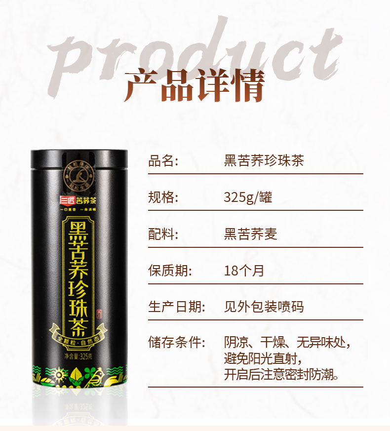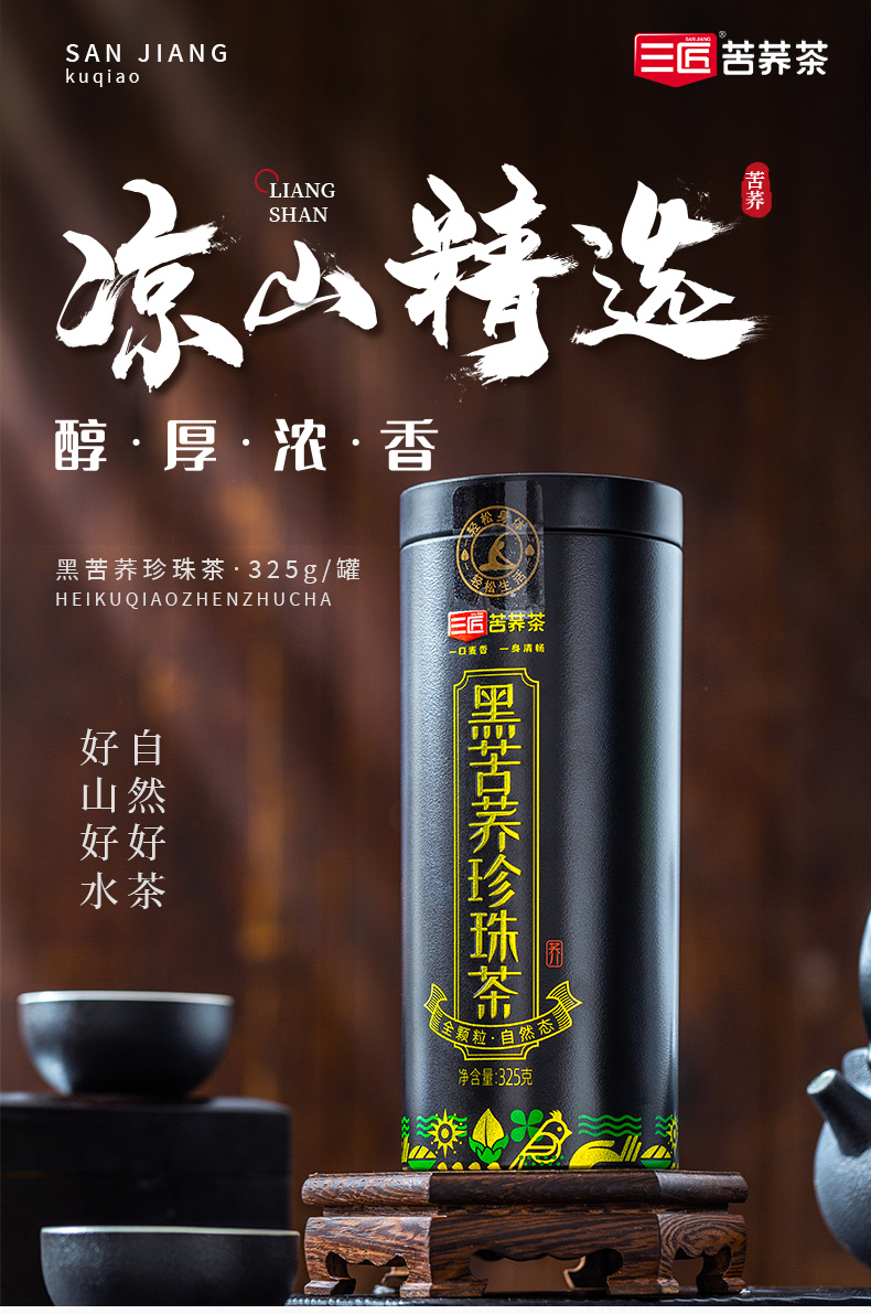 三匠 黑苦荞珍珠茶 325g/5罐 苦荞茶 黑色(单位:组)