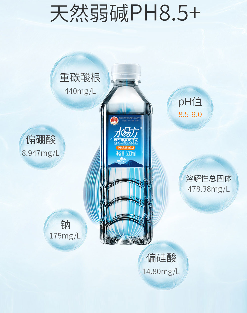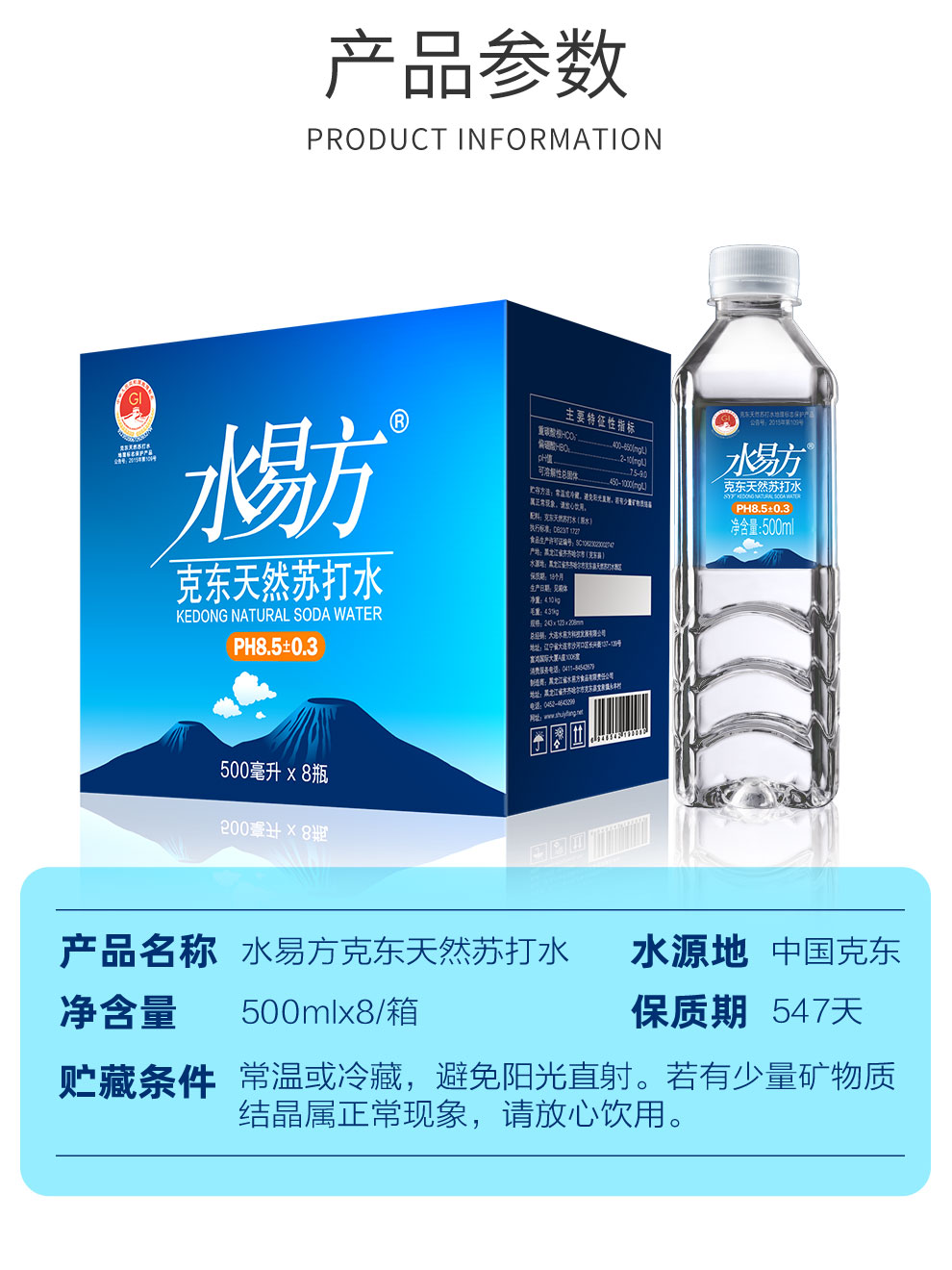 水易方(SYF) 克东天然苏打水 500ml*8瓶 天然弱碱自然强健 深蓝色(单位:箱)
