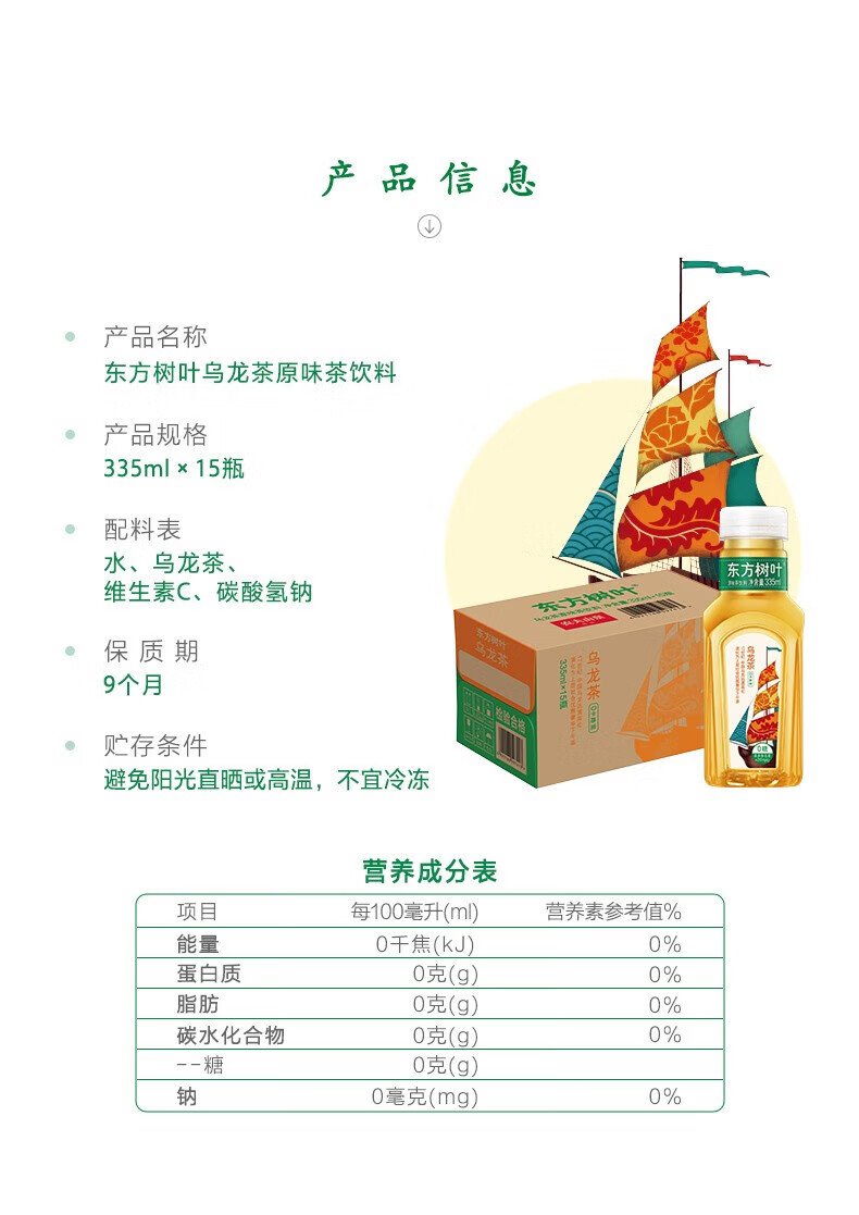 农夫山泉 东方树叶乌龙茶 335ml*24瓶 整箱装 琥珀色(单位:箱)