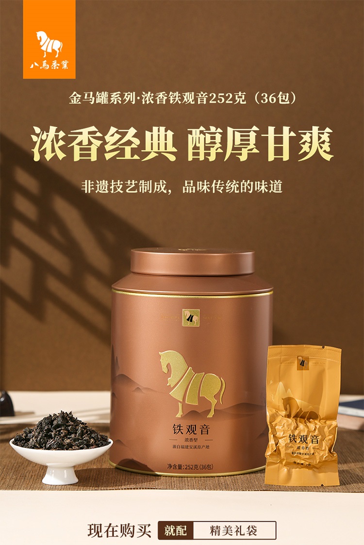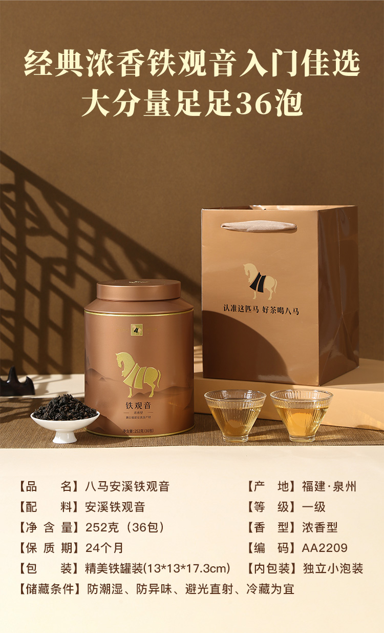 八马茶业 安溪铁观音浓香型绿茶 AA2209 金马罐252g 金色(单位:罐)