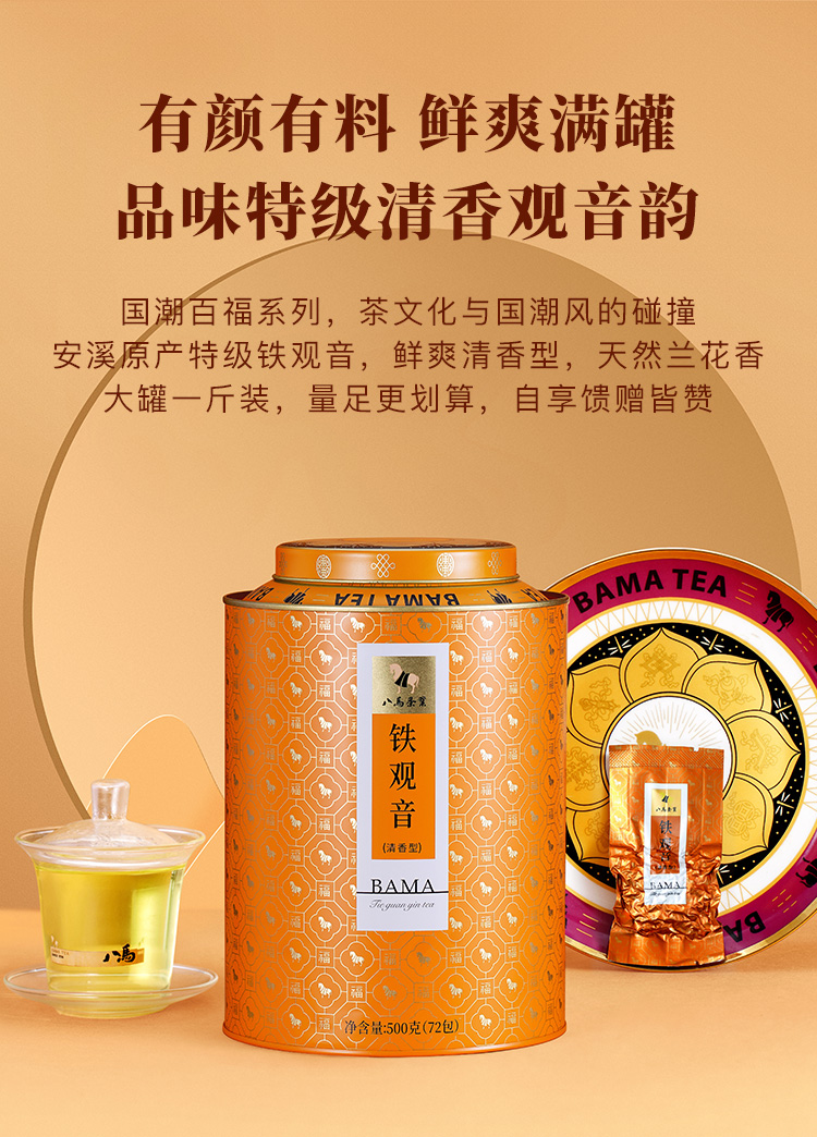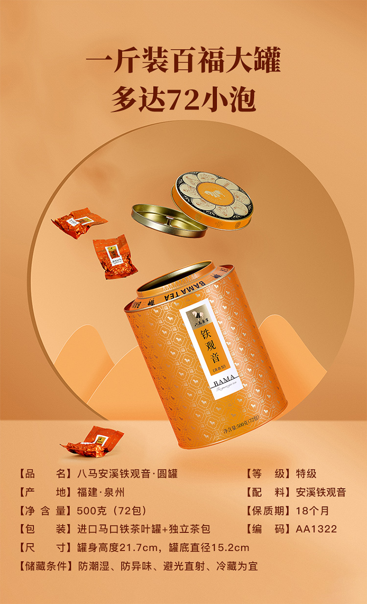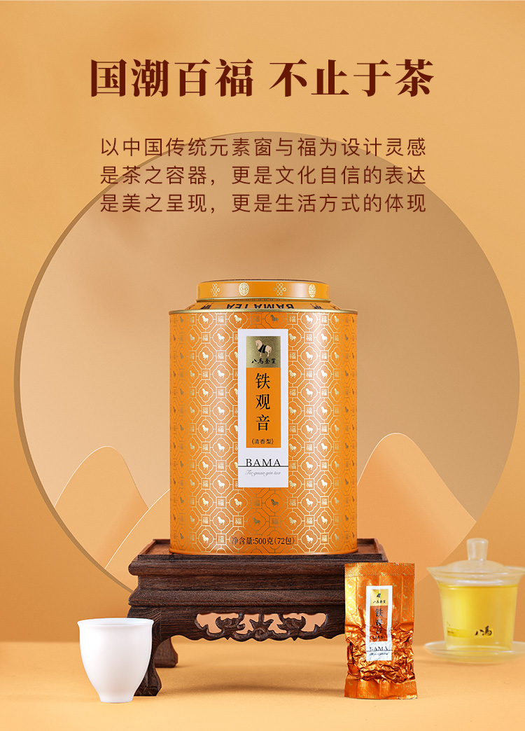 八马茶业 AA1322 安溪铁观音圆罐500g(72包,含礼袋) 百福系列独立小袋 混色(单位:罐)