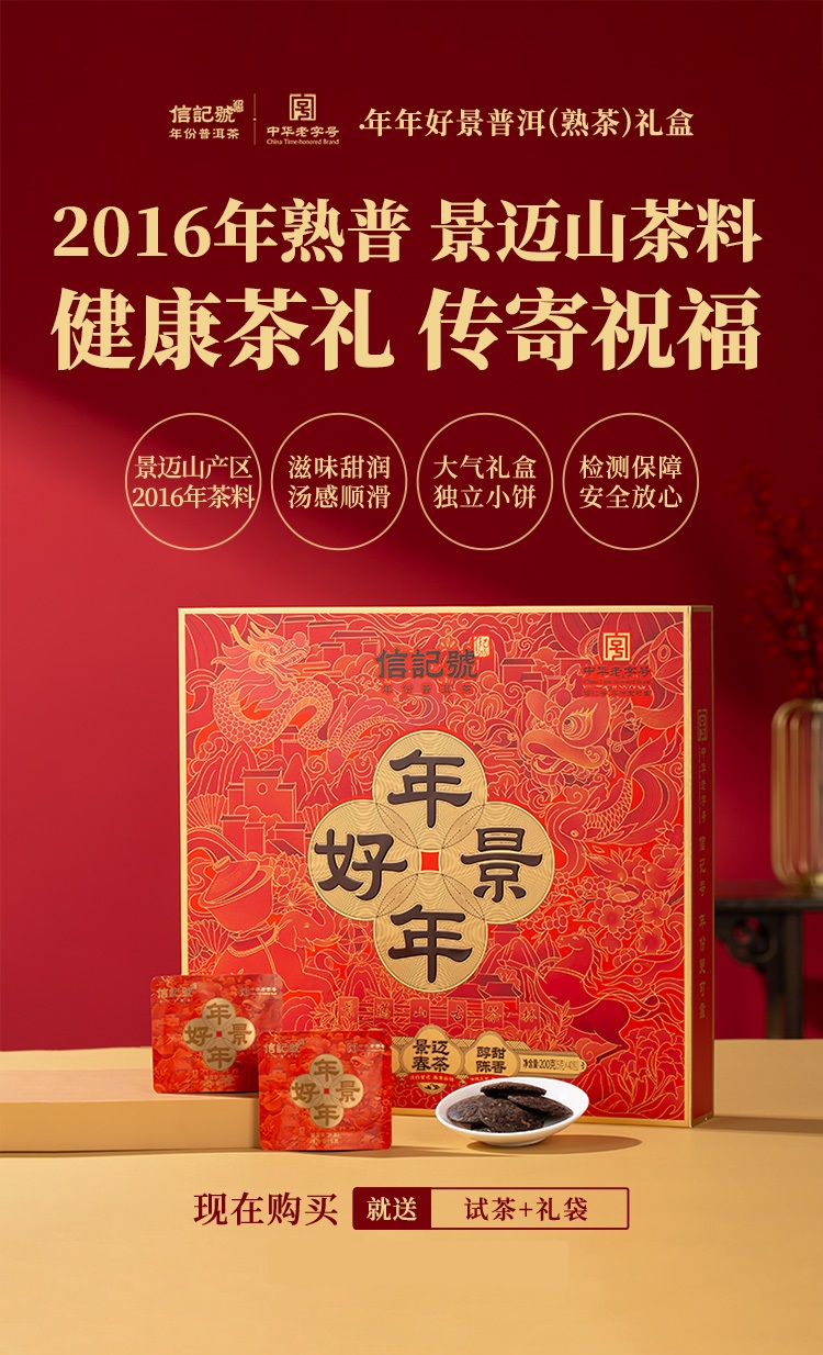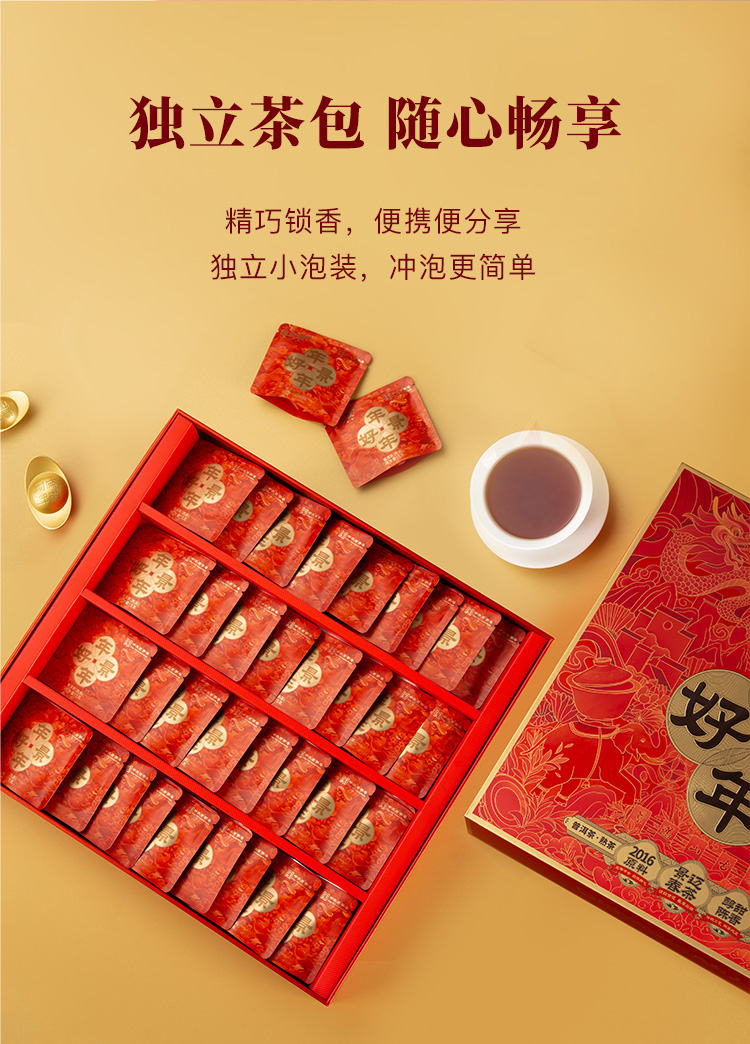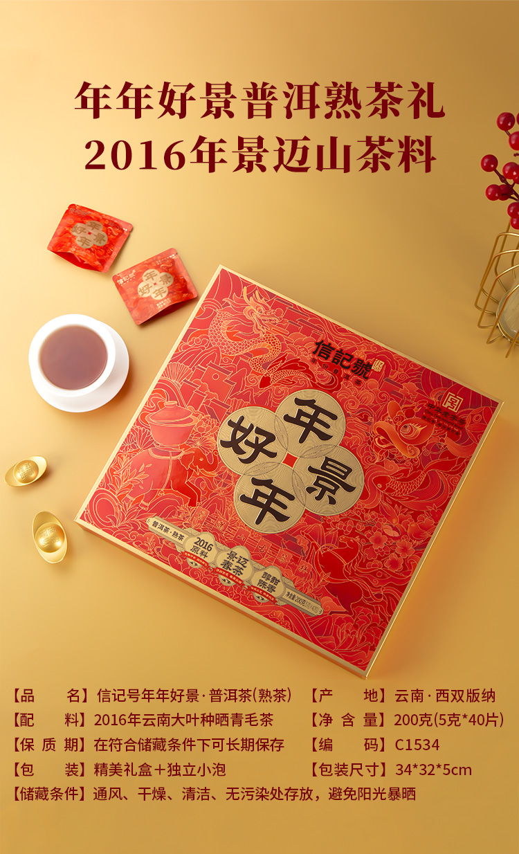 八马茶业 C1534FF 信记号云南普洱熟茶200g(5g*40片,含礼袋) 年年好景独立小袋 混色(单位:盒)