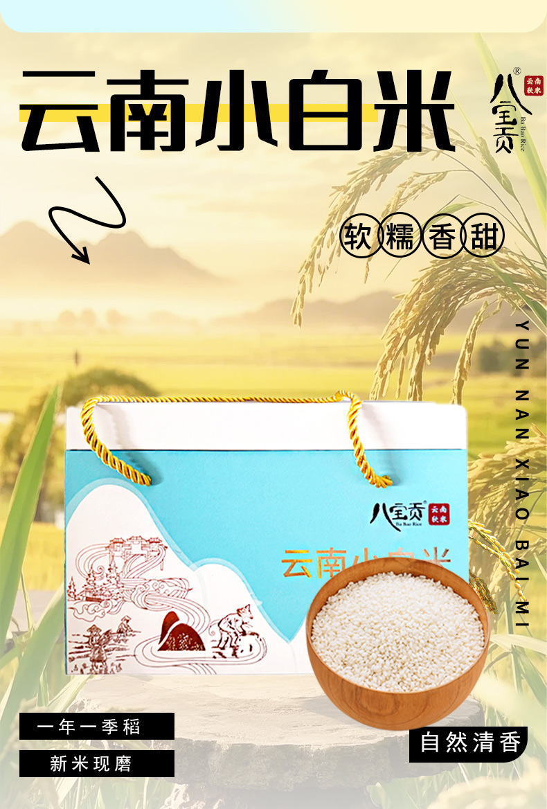 八宝贡 小白米礼盒装 3kg 细腻香软 软糯Q弹 混色(单位:盒)
