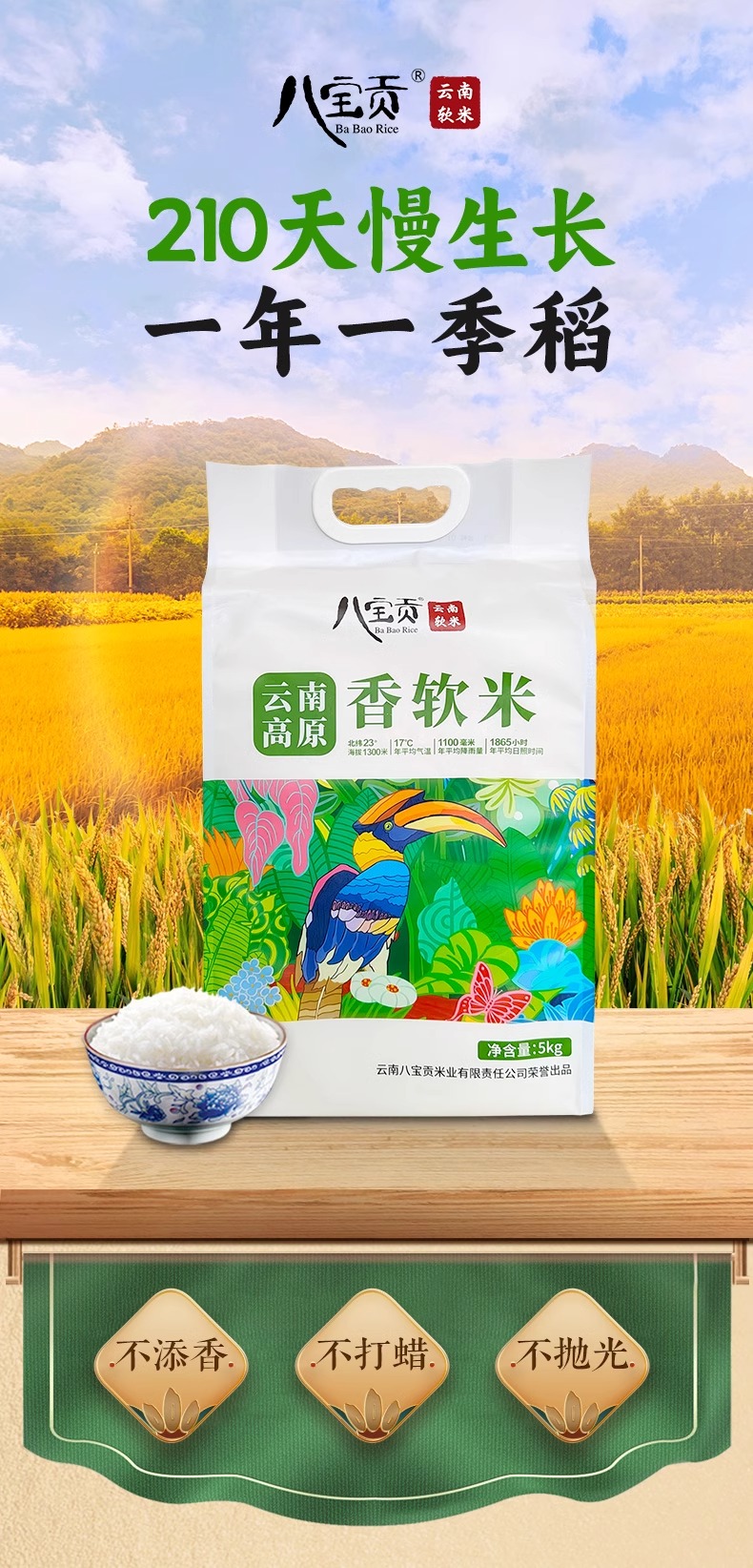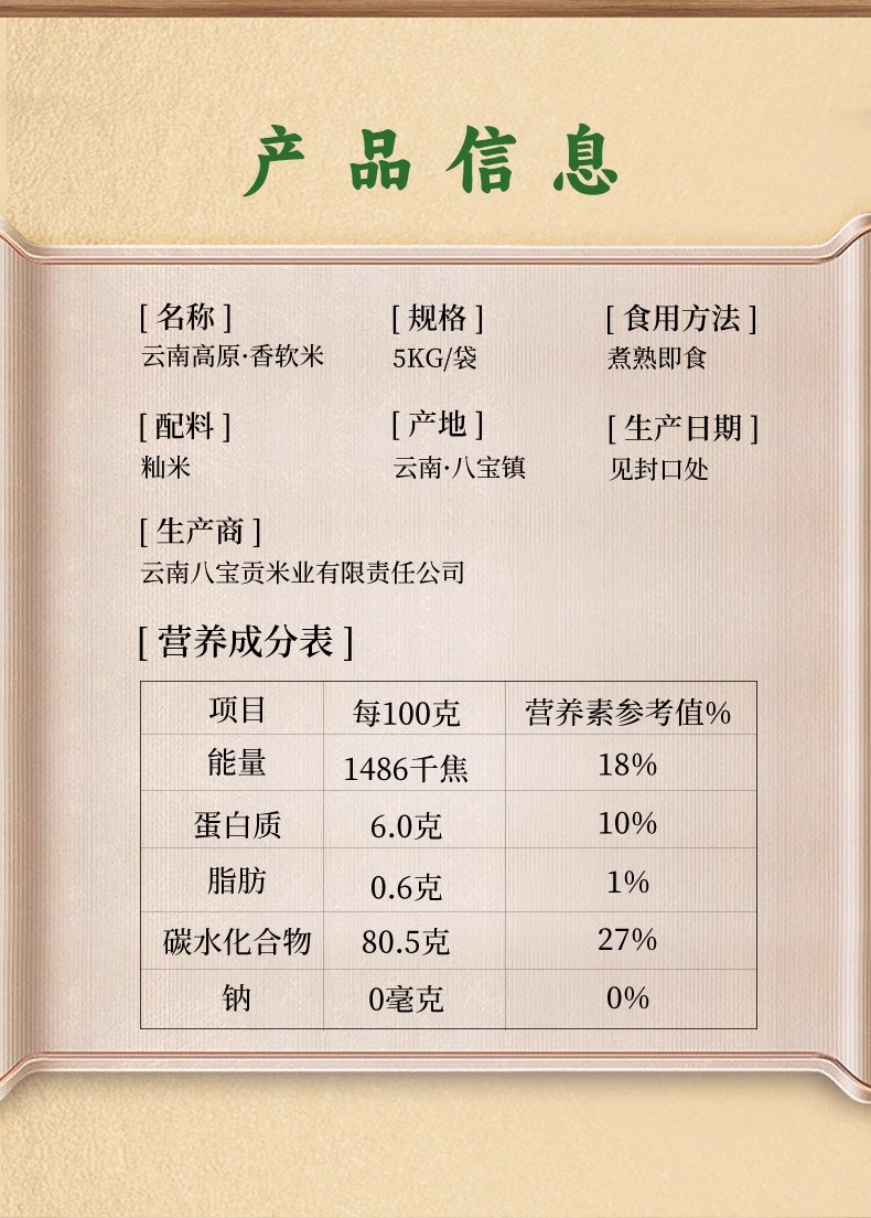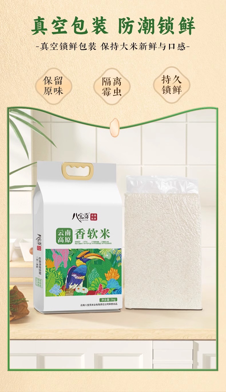 八宝贡 云南高原香软米 5kg 防潮锁鲜米香浓郁 混色(单位:袋)