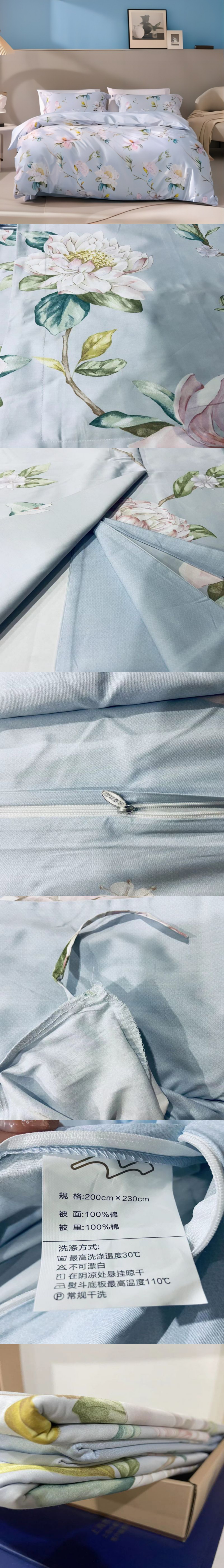 水星家纺四件套2m*2.3m淡蓝色花卉 全棉舒适 尚·初晨繁花 适用于1.5m床 花卉图案 尼加拉蓝