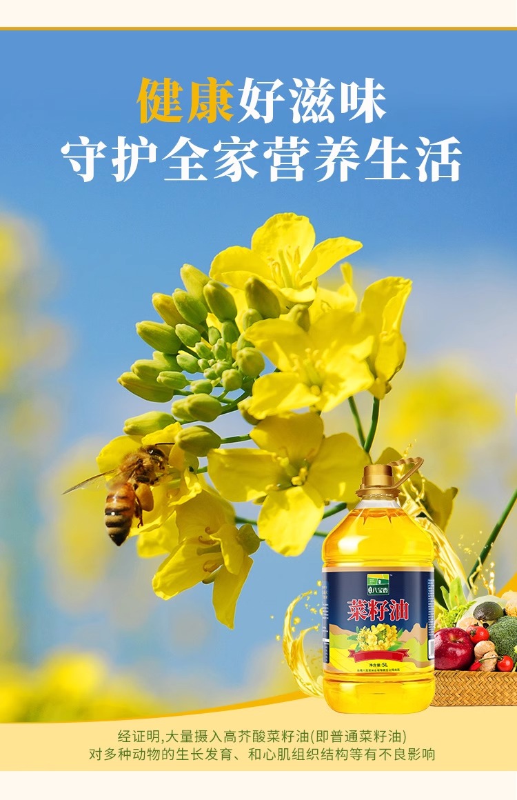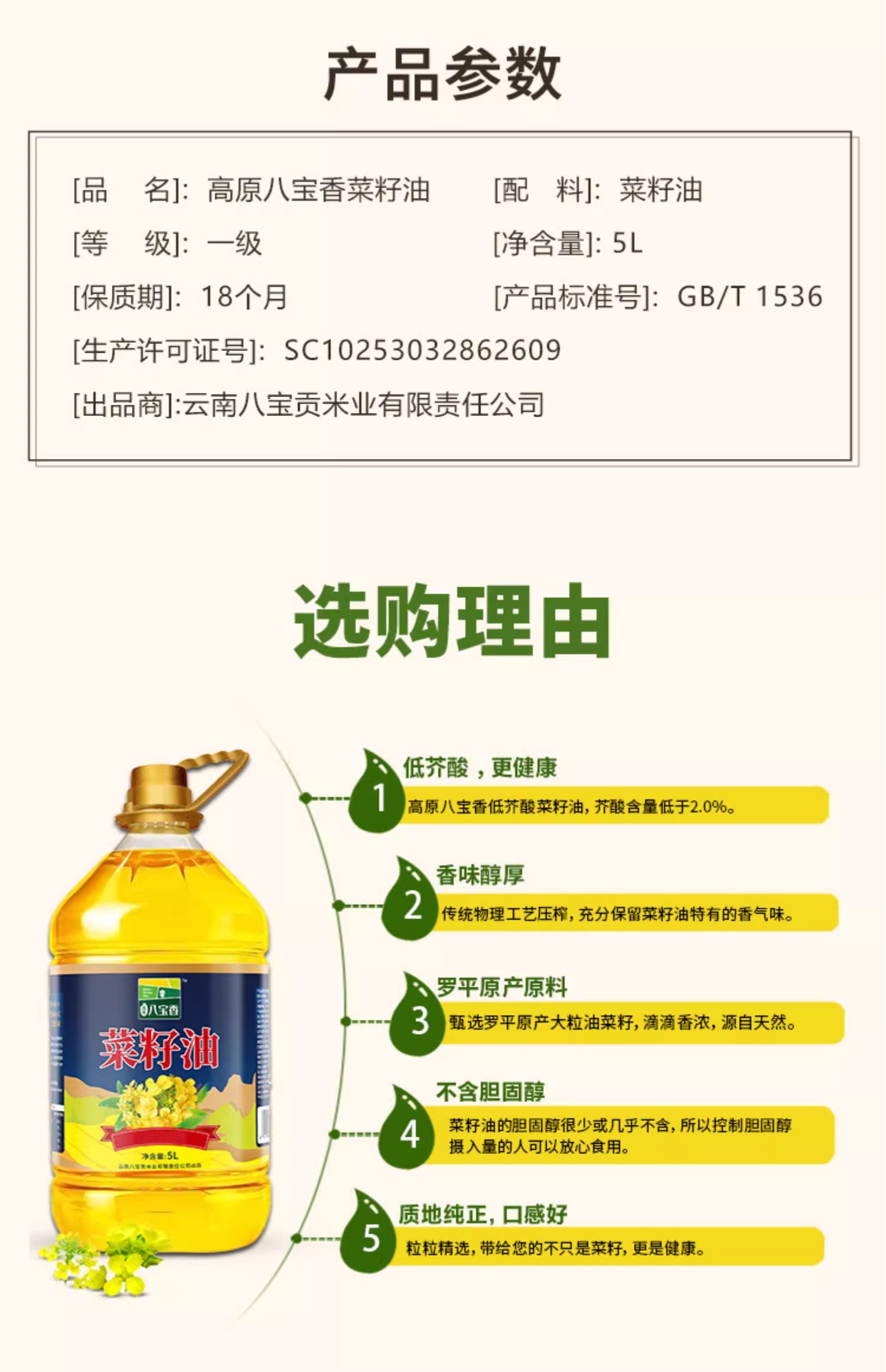 八宝贡 低芥酸菜籽油 5L 一级食用油 混色(单位:桶)