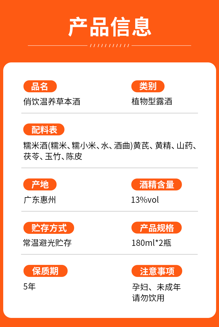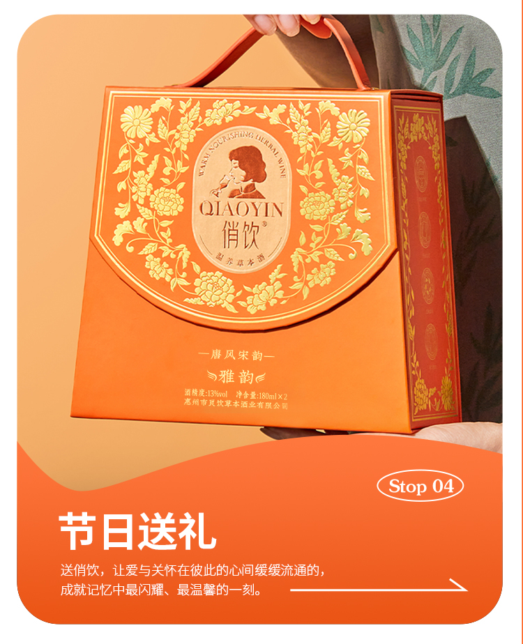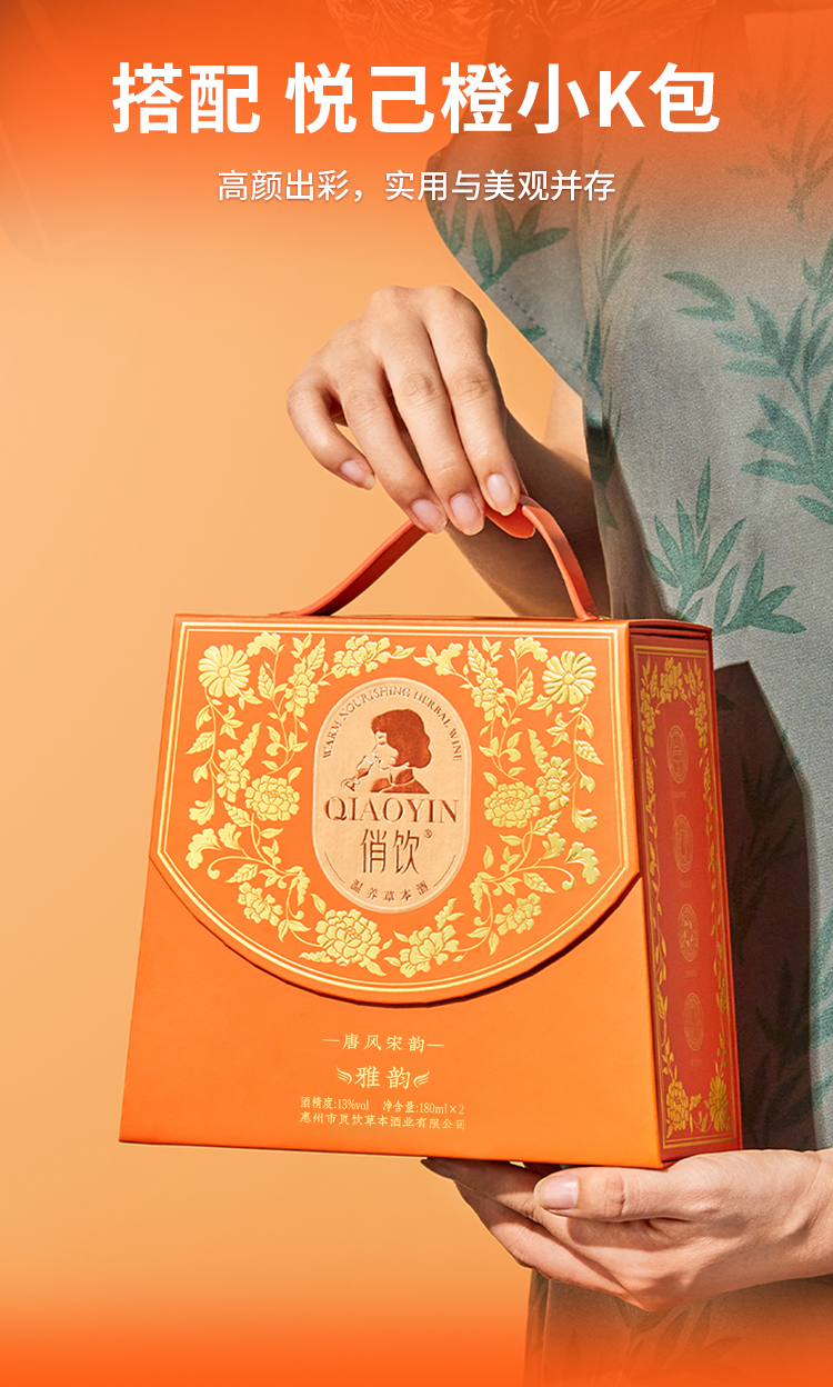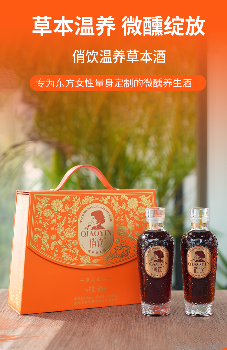 俏饮 礼盒装 180毫升*2瓶 温养草本酒 精致礼盒 灰橙色(单位:瓶)