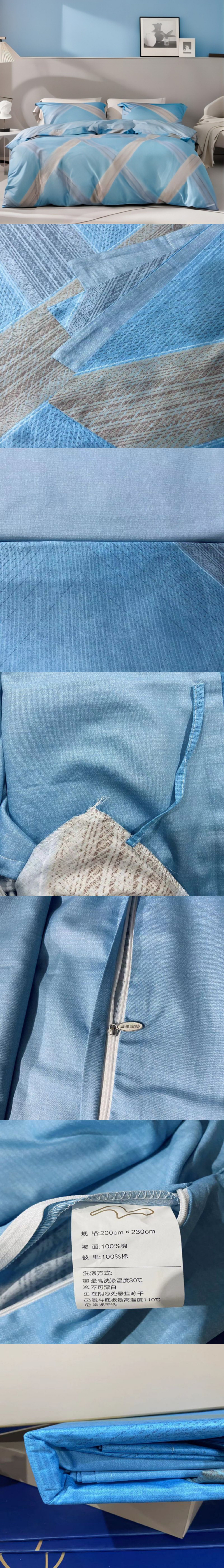 水星家纺四件套2m*2.3m长绒棉全棉面料 尚·智绘 适用于1.5m床 宝蓝色简约条纹 宝石蓝