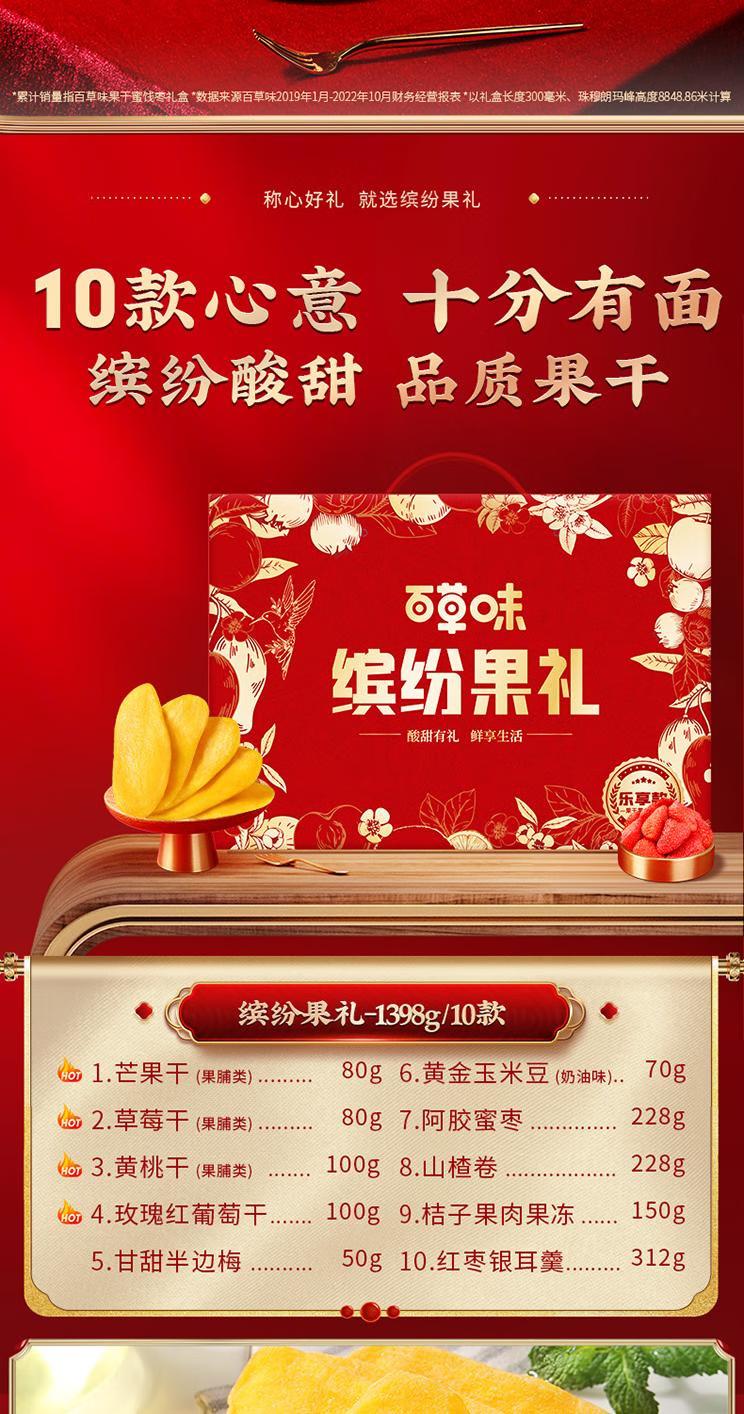 百草味 休闲零食 1398g 缤纷果干礼 枫叶色(单位:盒)