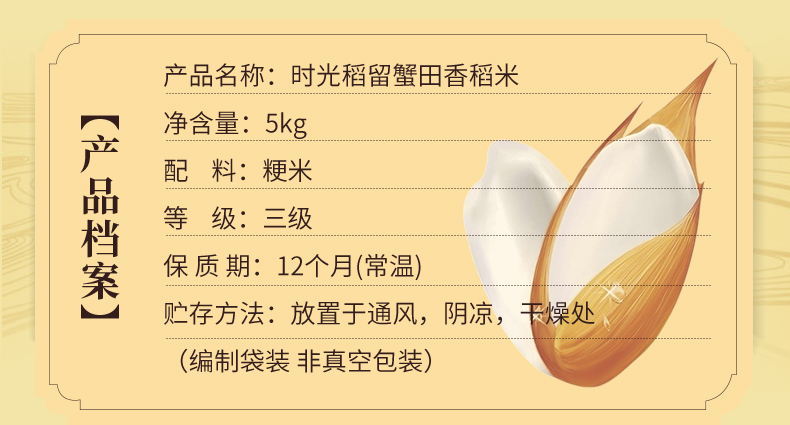 时光稻留 粳米 5kg*1 粒粒饱满 橙色(单位:袋)