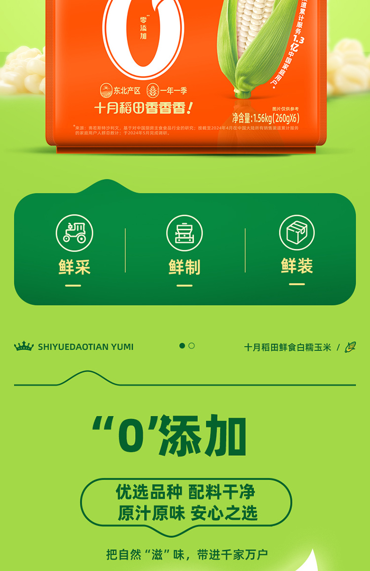 十月稻田 0添加 鲜食白糯玉米 1.56kg 灰橙色(单位:袋)