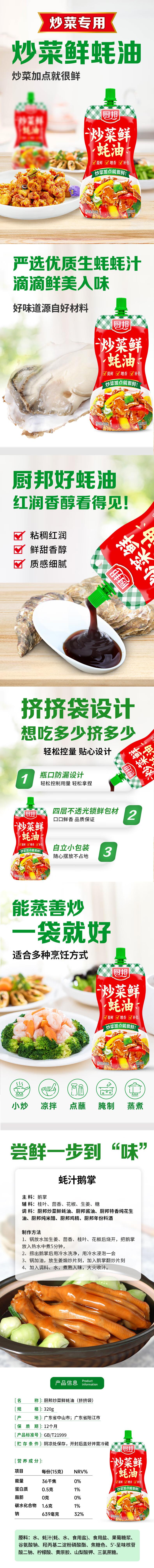 厨邦 炒菜鲜蚝油(挤挤装) 320g 鲜甜香醇 褐色(单位:袋)