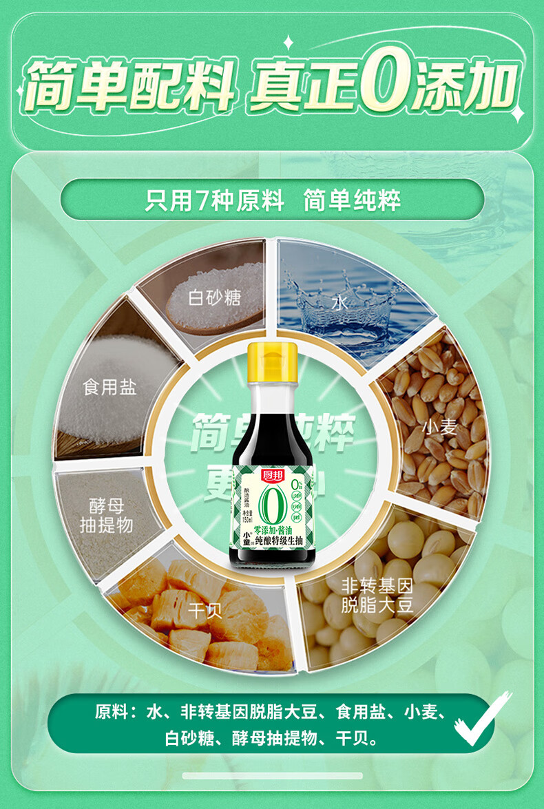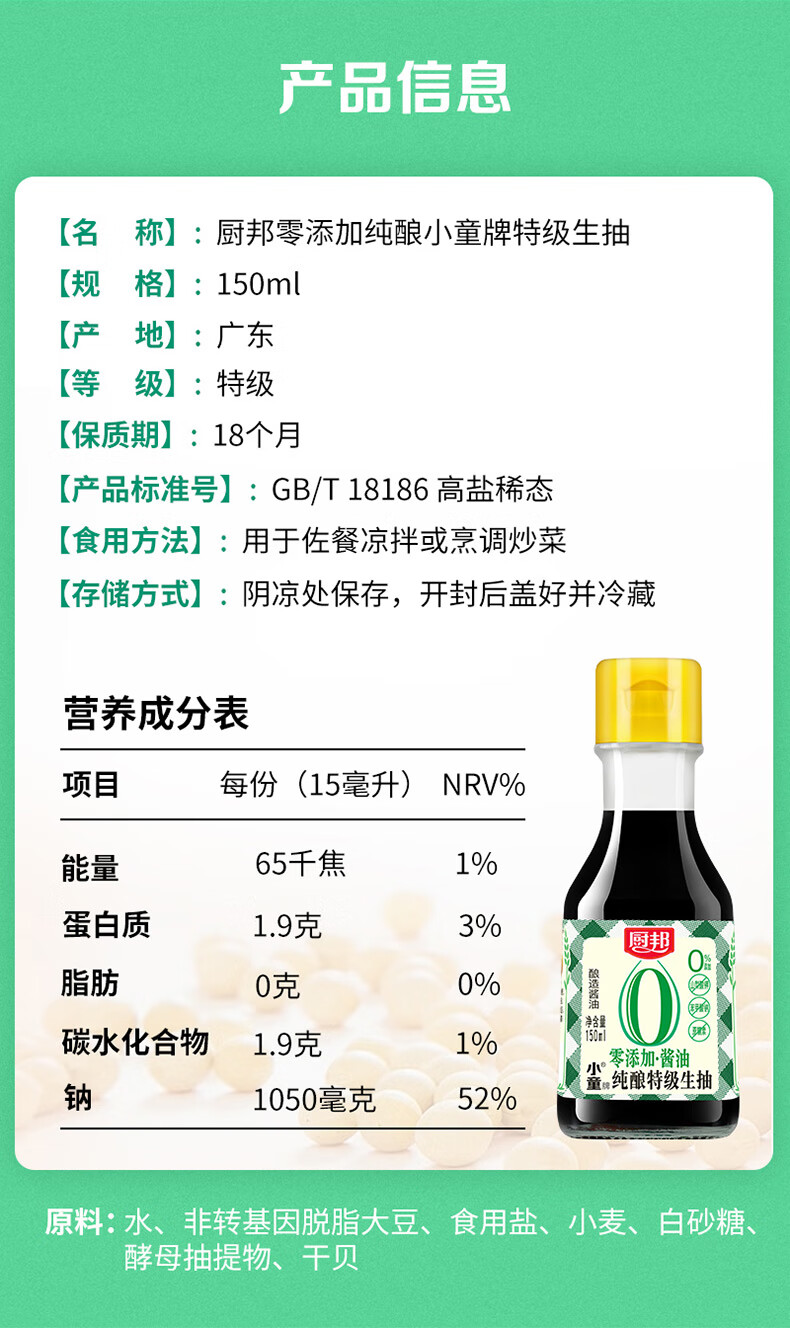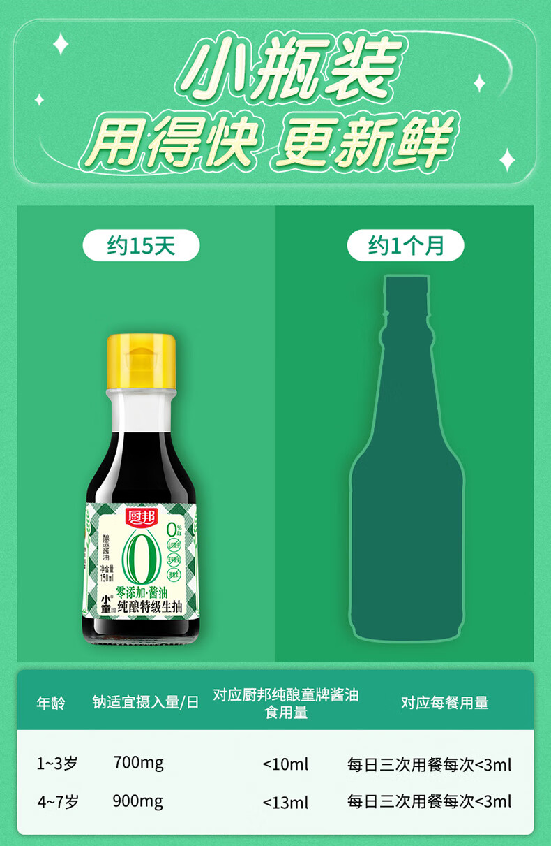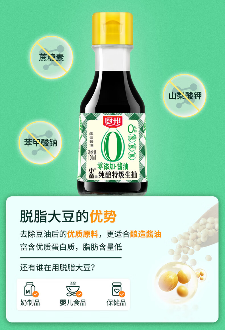 厨邦 零添加纯酿小童®特级生抽 150ML 纯粮无添加 褐色(单位:瓶)