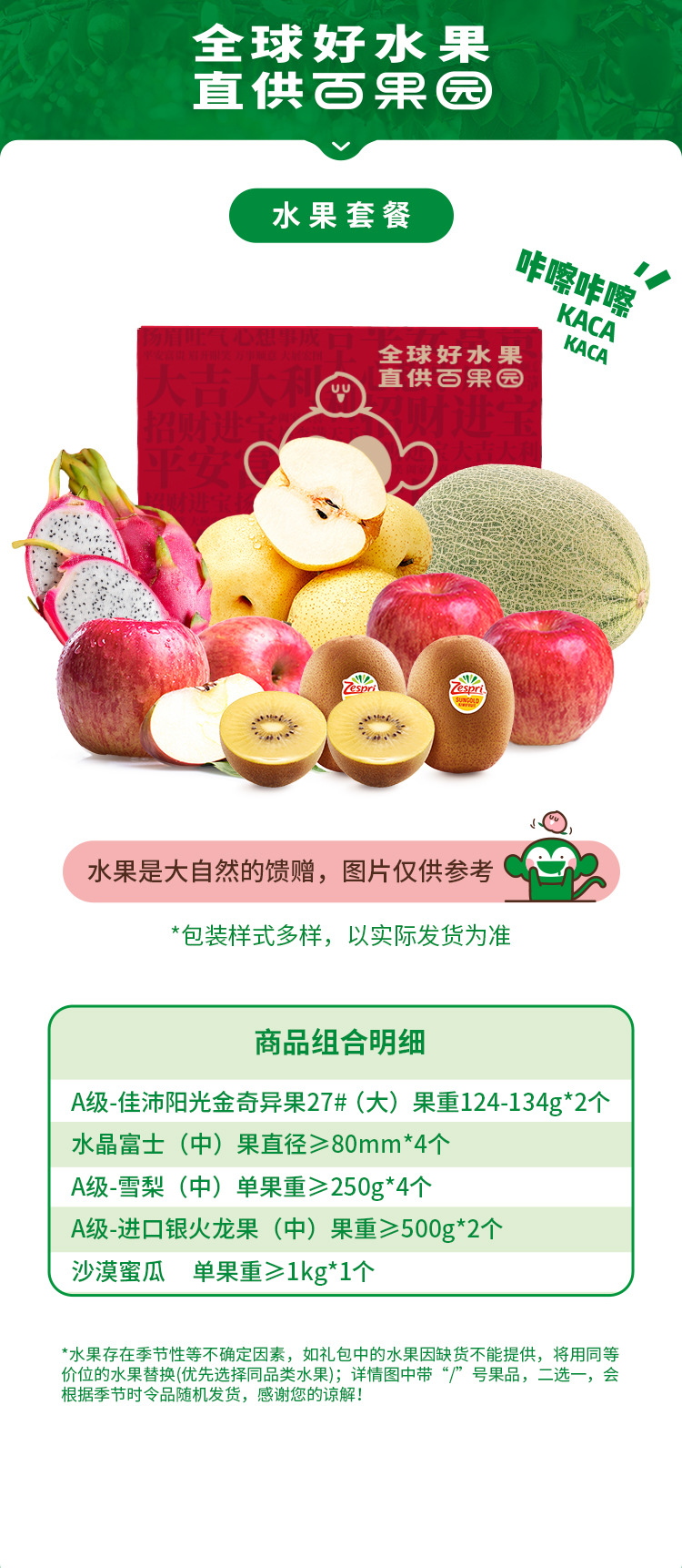 百果园(PAGODA) 果宝奇缘水果礼包 4800g(含5种水果) 口味丰富品质保障 混色(单位:箱)