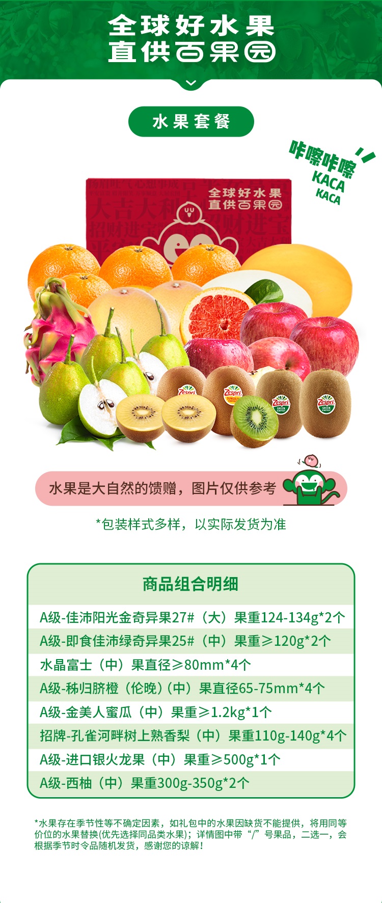 百果园(PAGODA) 福果满堂水果礼包 6000g(含8种水果) 时令水果口感丰富 混色(单位:箱)