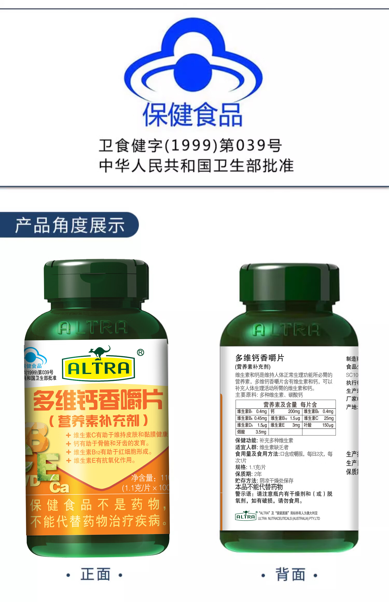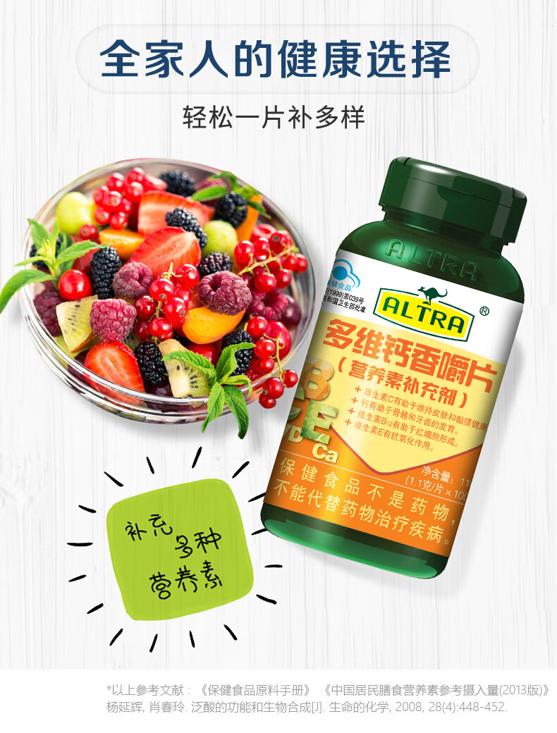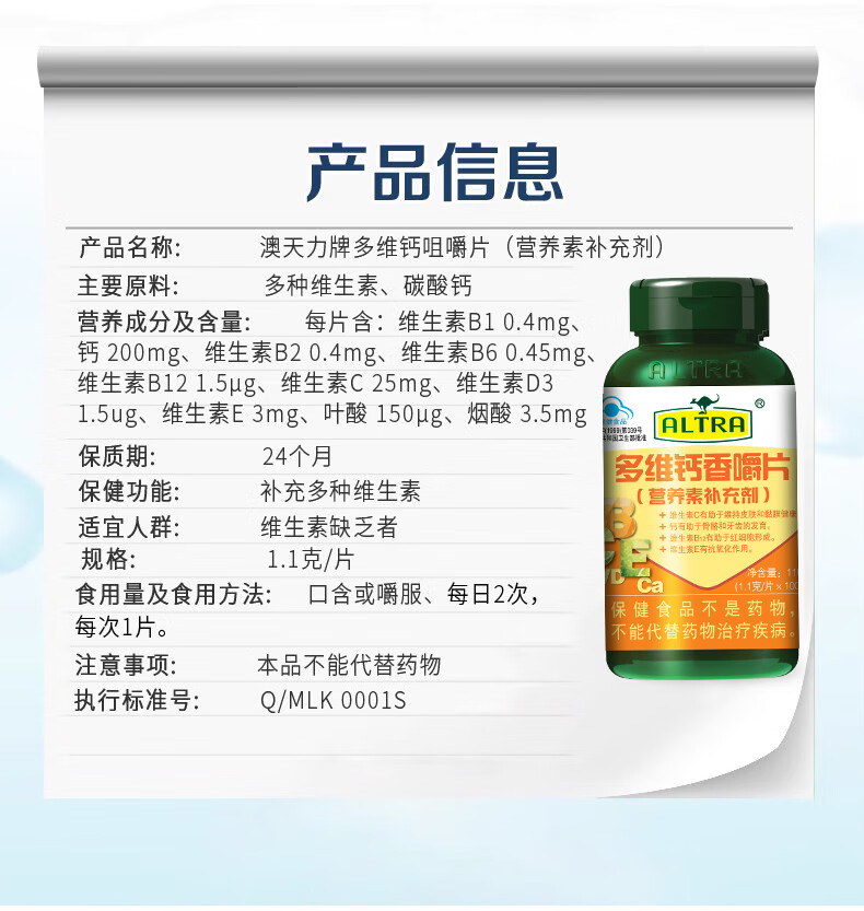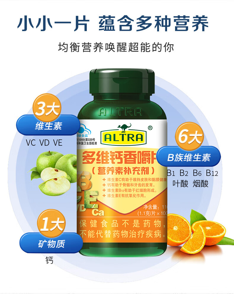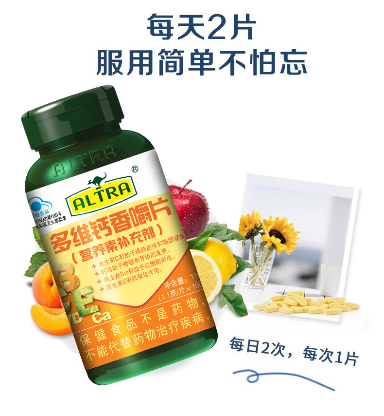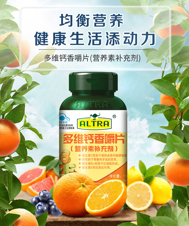 澳天力 多维钙 1.1g*100片 多维钙香嚼片 黄色(单位:瓶)