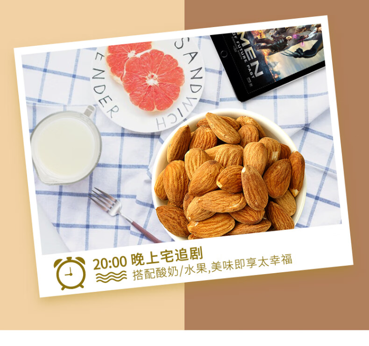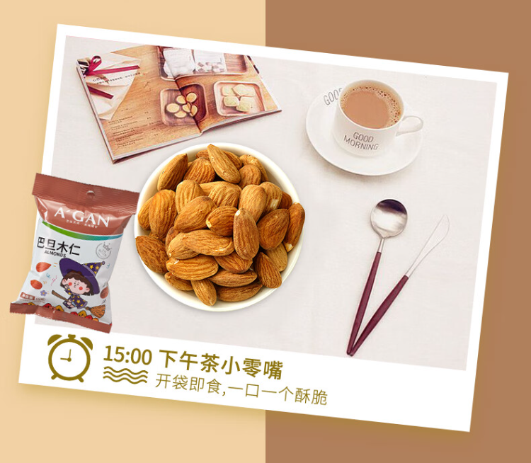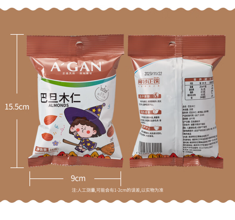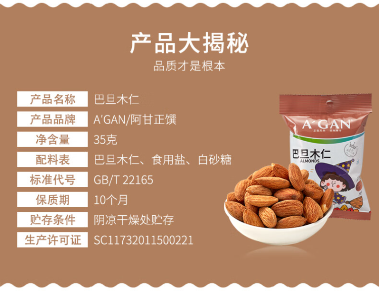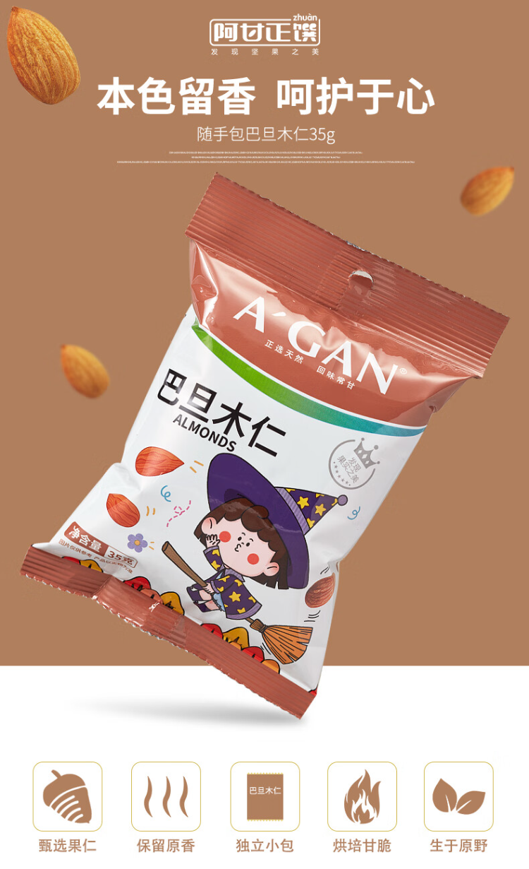 阿甘正馔(A'GAN) 原味巴旦木仁 35g 坚果炒货休闲零食 褐色(单位:袋)
