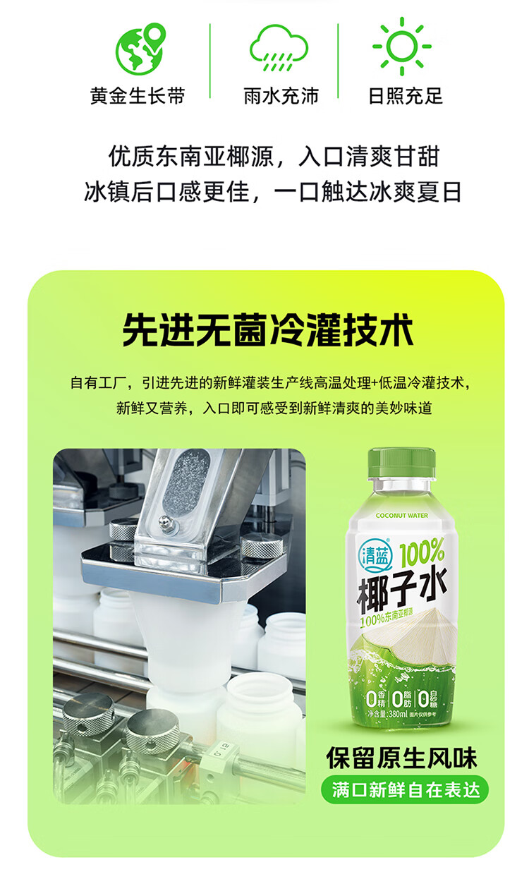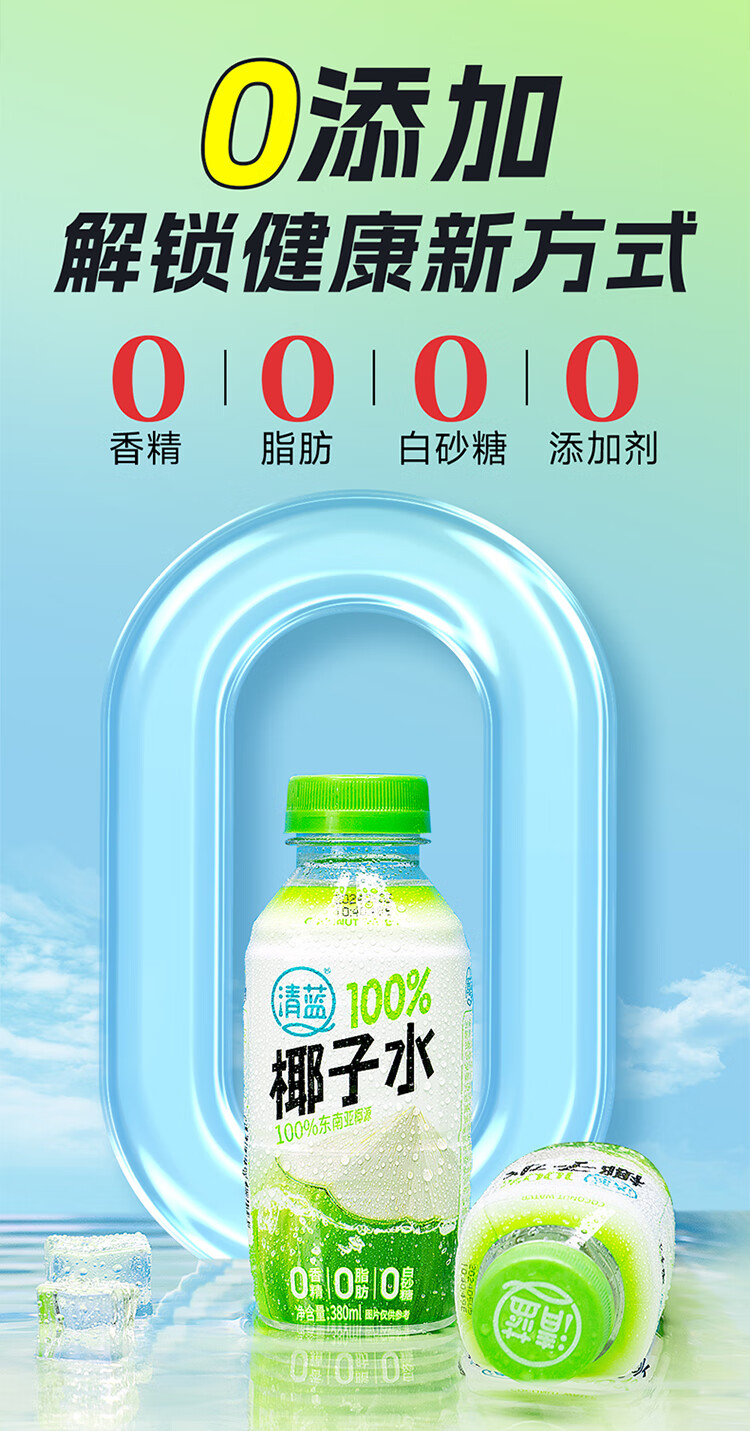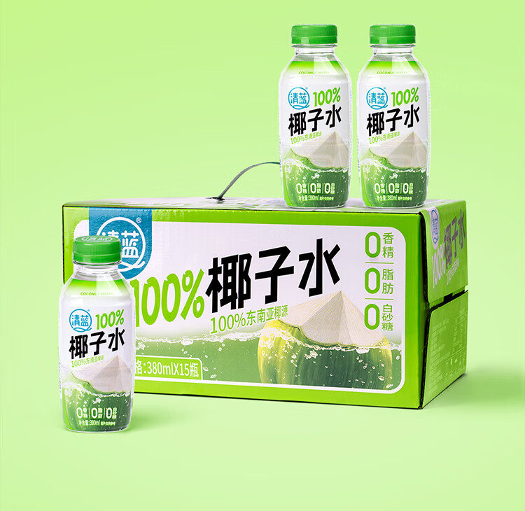 清蓝 100%椰子水 380ml*15 天然电解质椰青水 灰绿色(单位:箱)