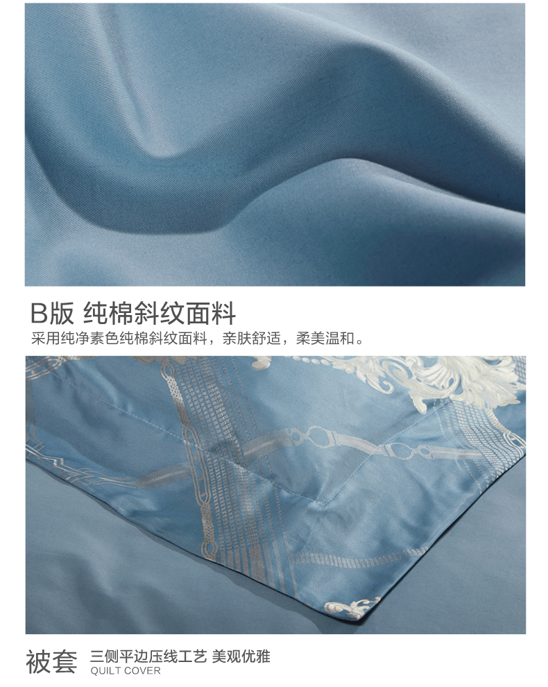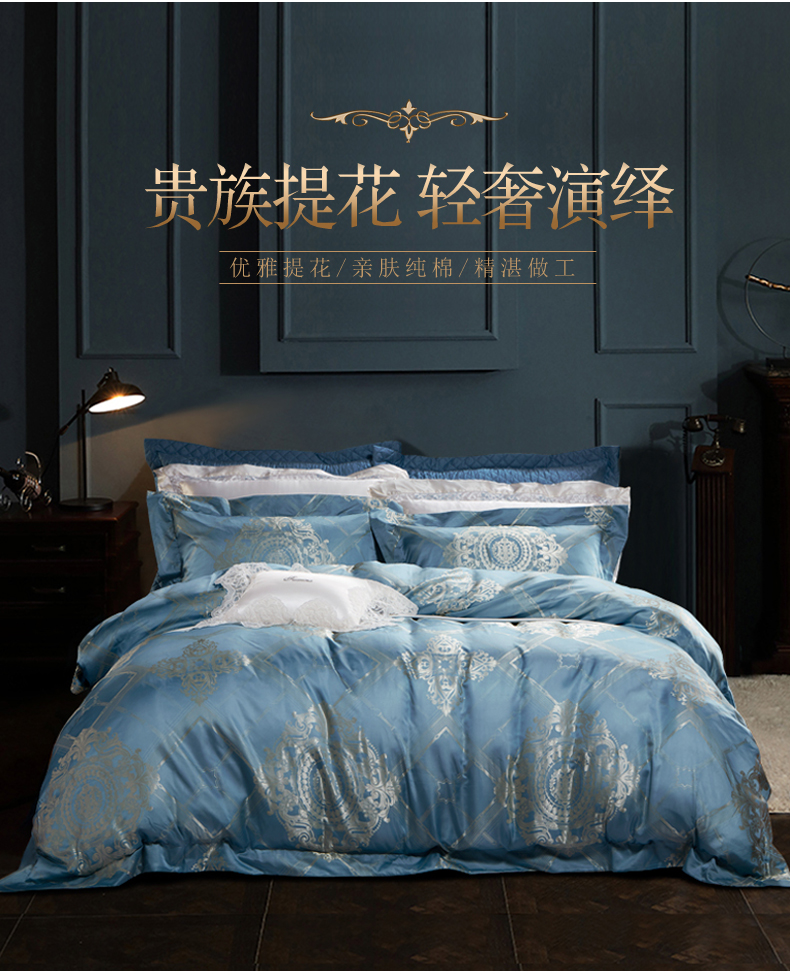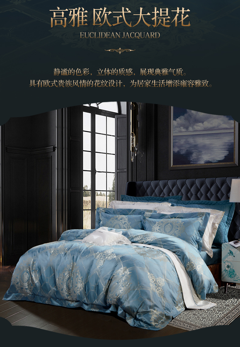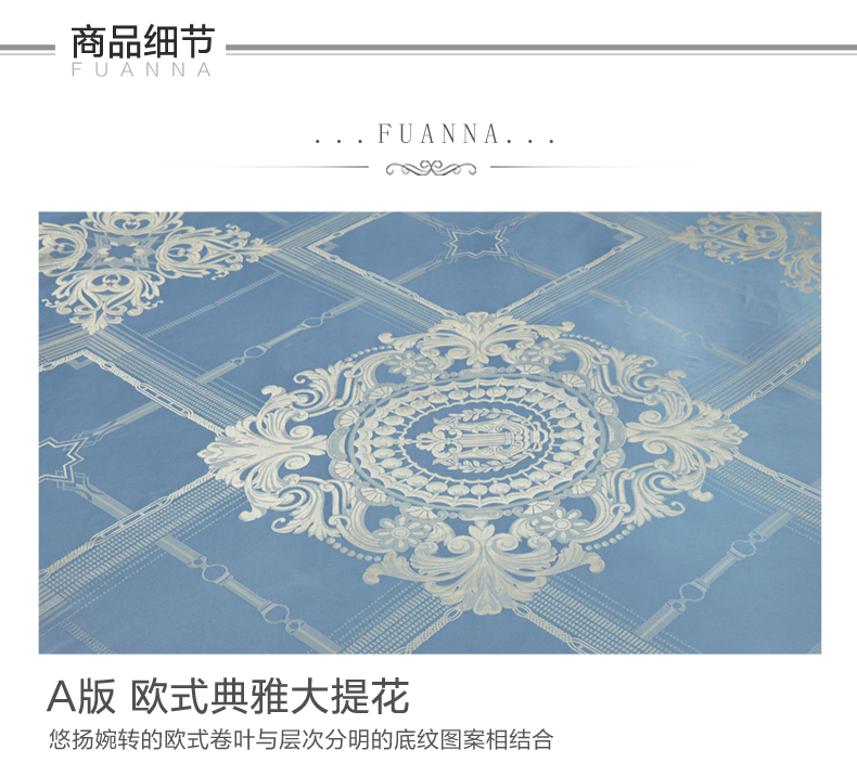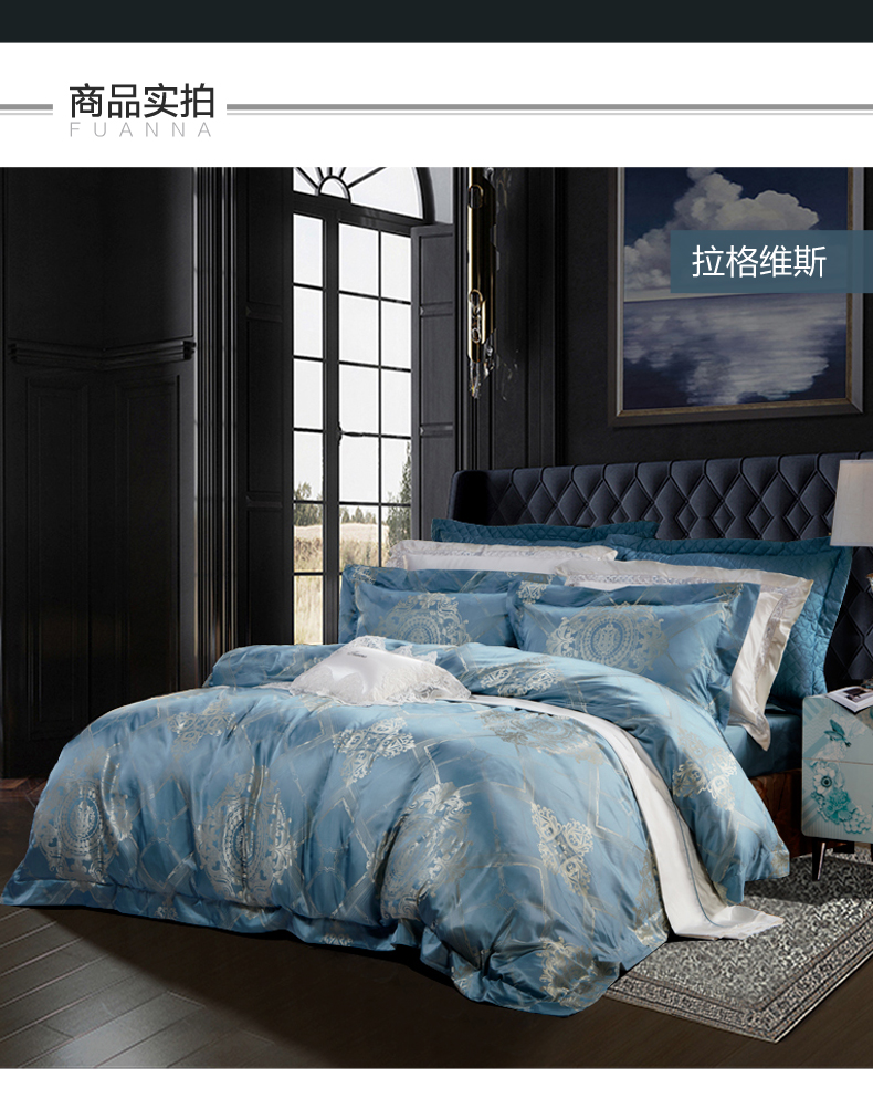 富安娜 欧式提花床单款四件套 拉格维斯素提 203*229CM 1.5米 蓝色(单位:套)